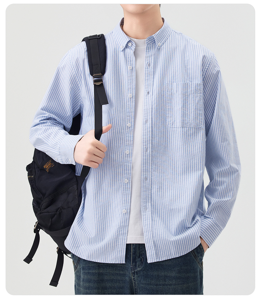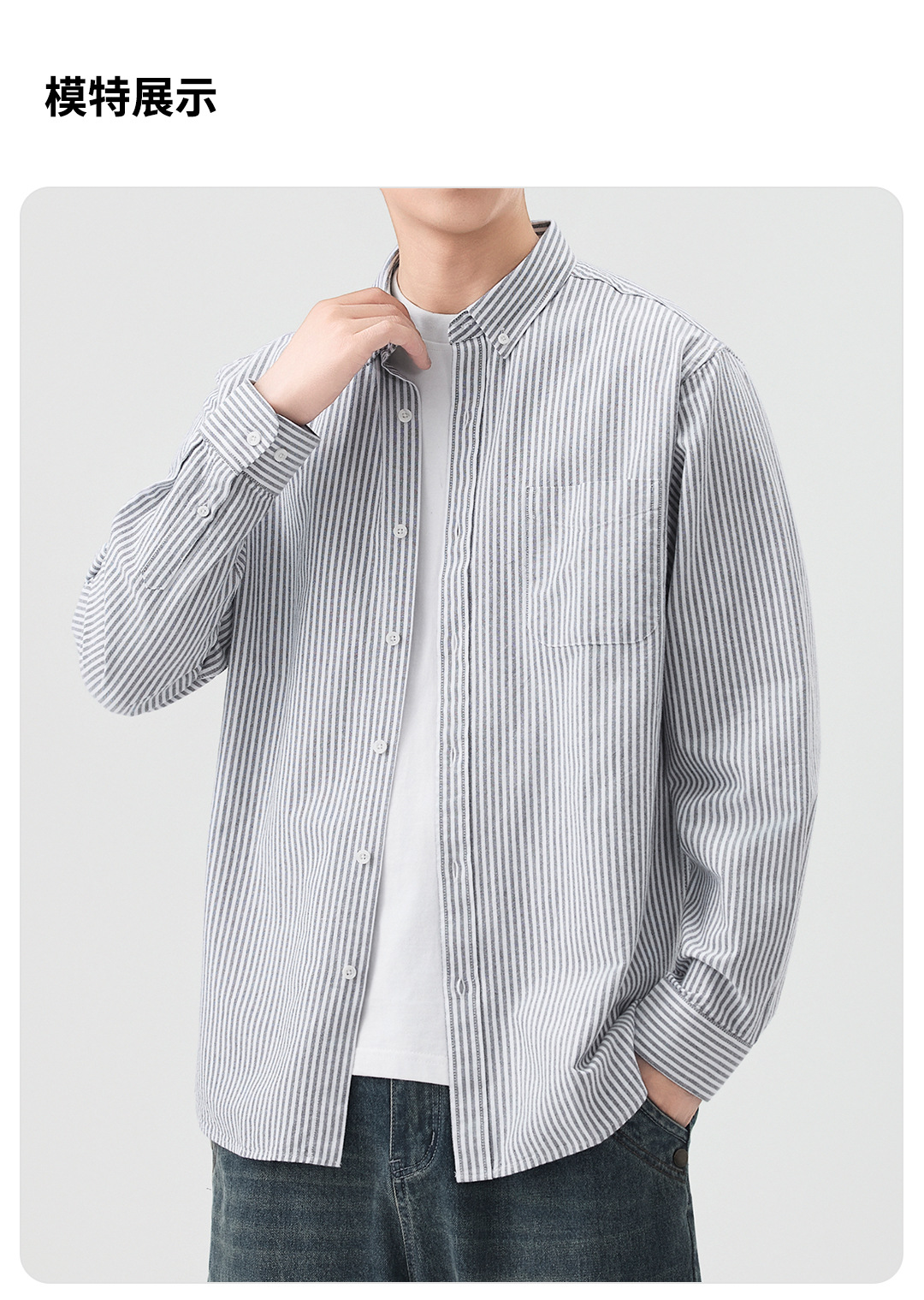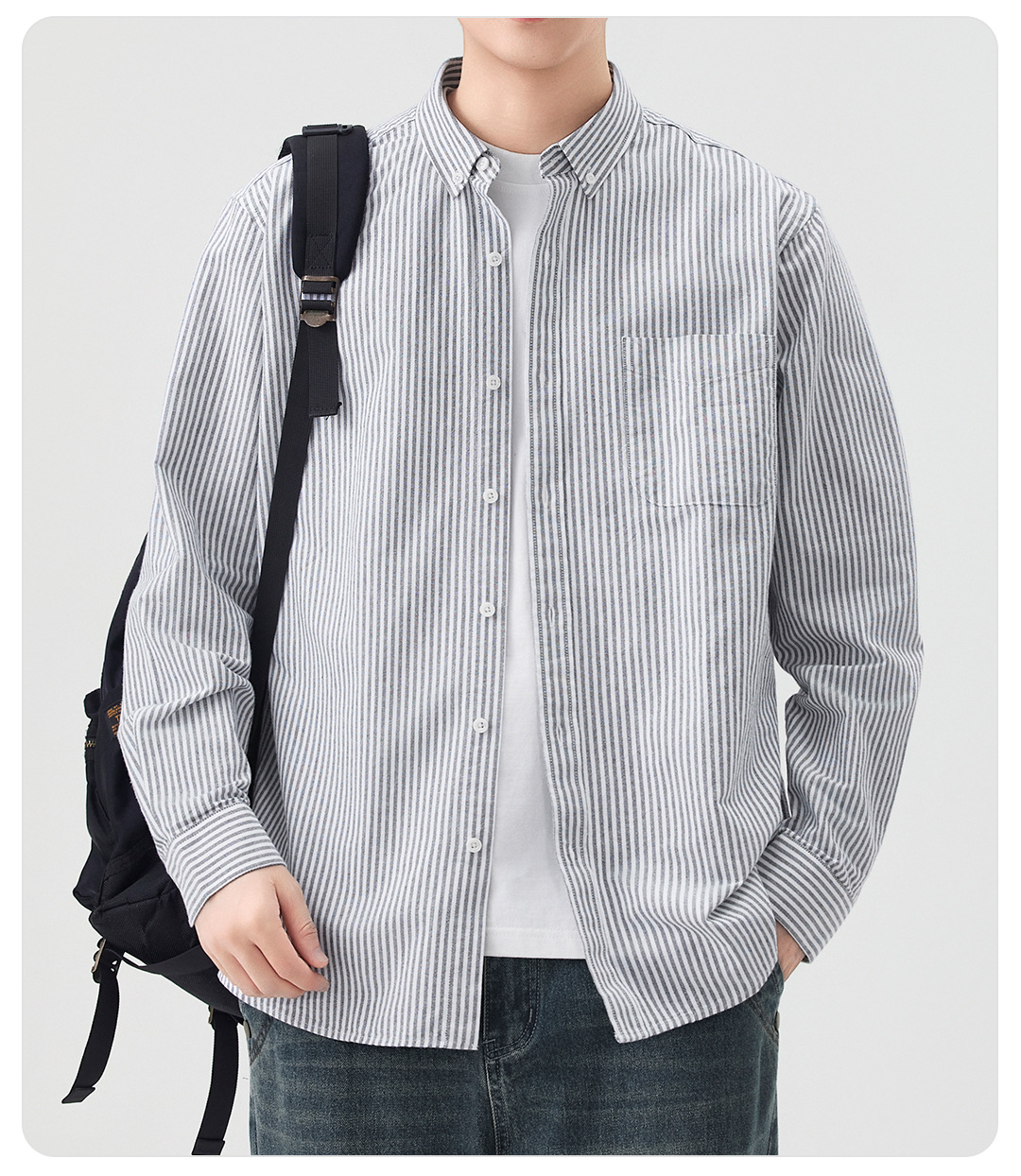 동유 남성복 봄 여름 셔츠 순면 재킷 이너웨어 옥스포드 남성 긴팔 스트라이프 셔츠 순면 편안함스토어 가기