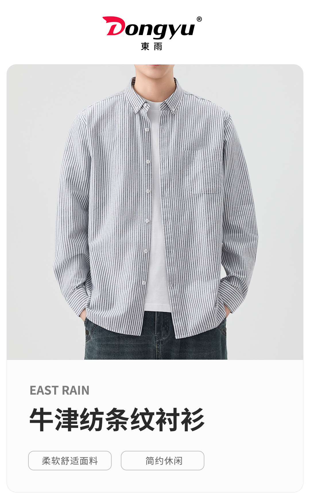 동유 남성복 봄 여름 셔츠 순면 재킷 이너웨어 옥스포드 남성 긴팔 스트라이프 셔츠 순면 편안함