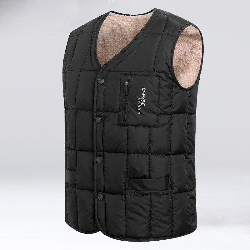 기모 두꺼운 따뜻한 겉옷 착용 조끼 중년 및 노인 아빠의 조끼 플러스 사이즈 가을과 겨울 남성 다운 면 조끼스토어 가기