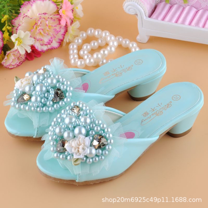 어린이용 하이힐, 여자아이 공주 슬리퍼, 2025 여름 아우트도어용 여아 엘사 크리스탈 슈즈, 공주풍스토어 가기