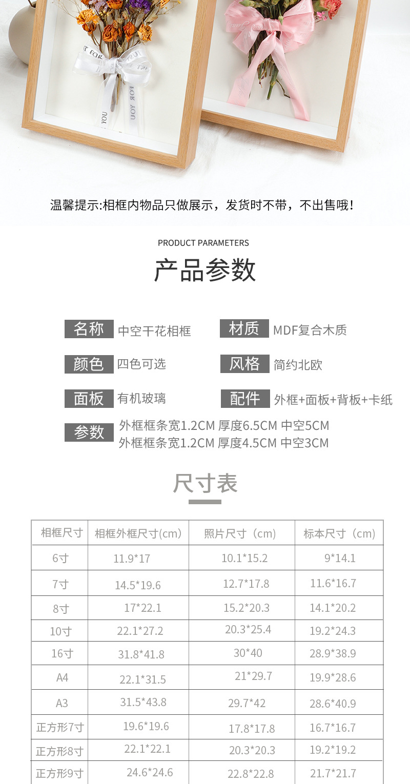 스테레오 할로우 두꺼운 말린 꽃 사진 프레임 도매 DIY 수제 표본 디스플레이 프레임 테이블 A43 클레이 장착 그림 프레임스토어 가기