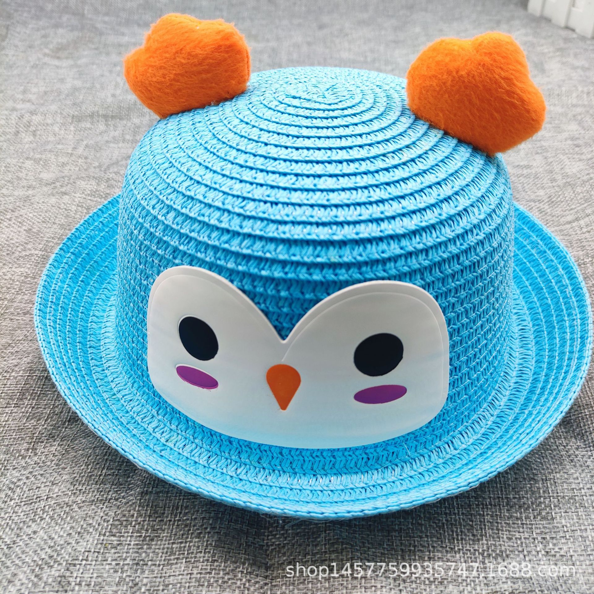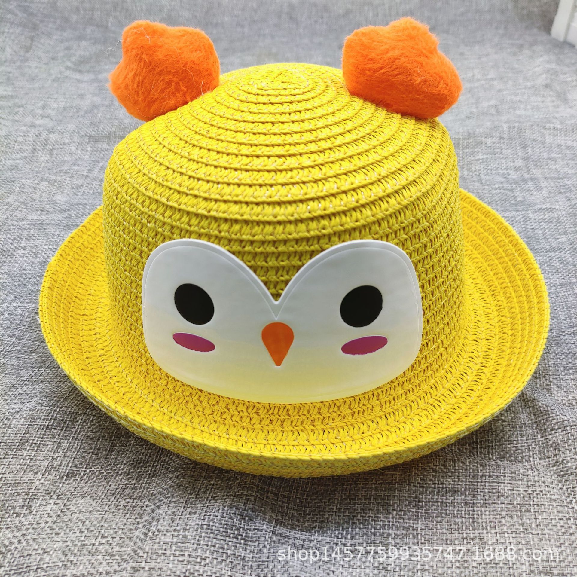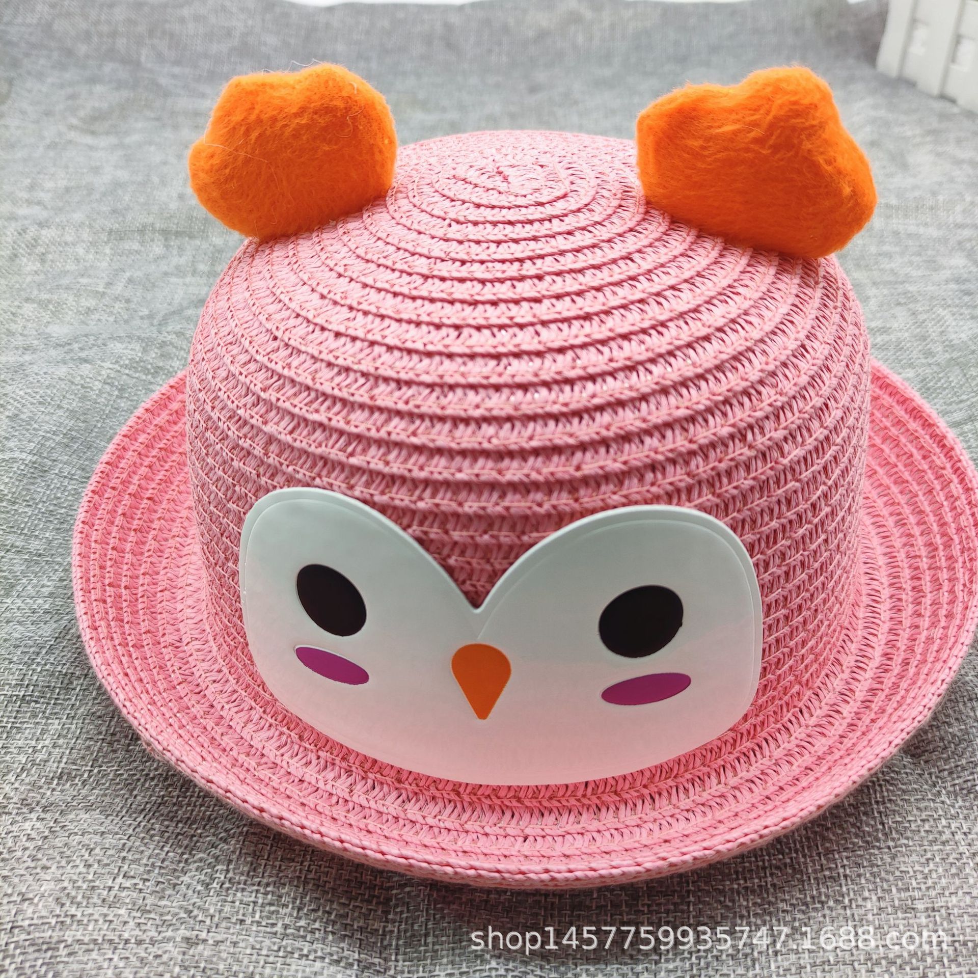 공장 공급 봄과 여름 새 어린이 밀짚 모자 야외 자외선 차단제 모자 닭 귀 컬 돔 모자스토어 가기
