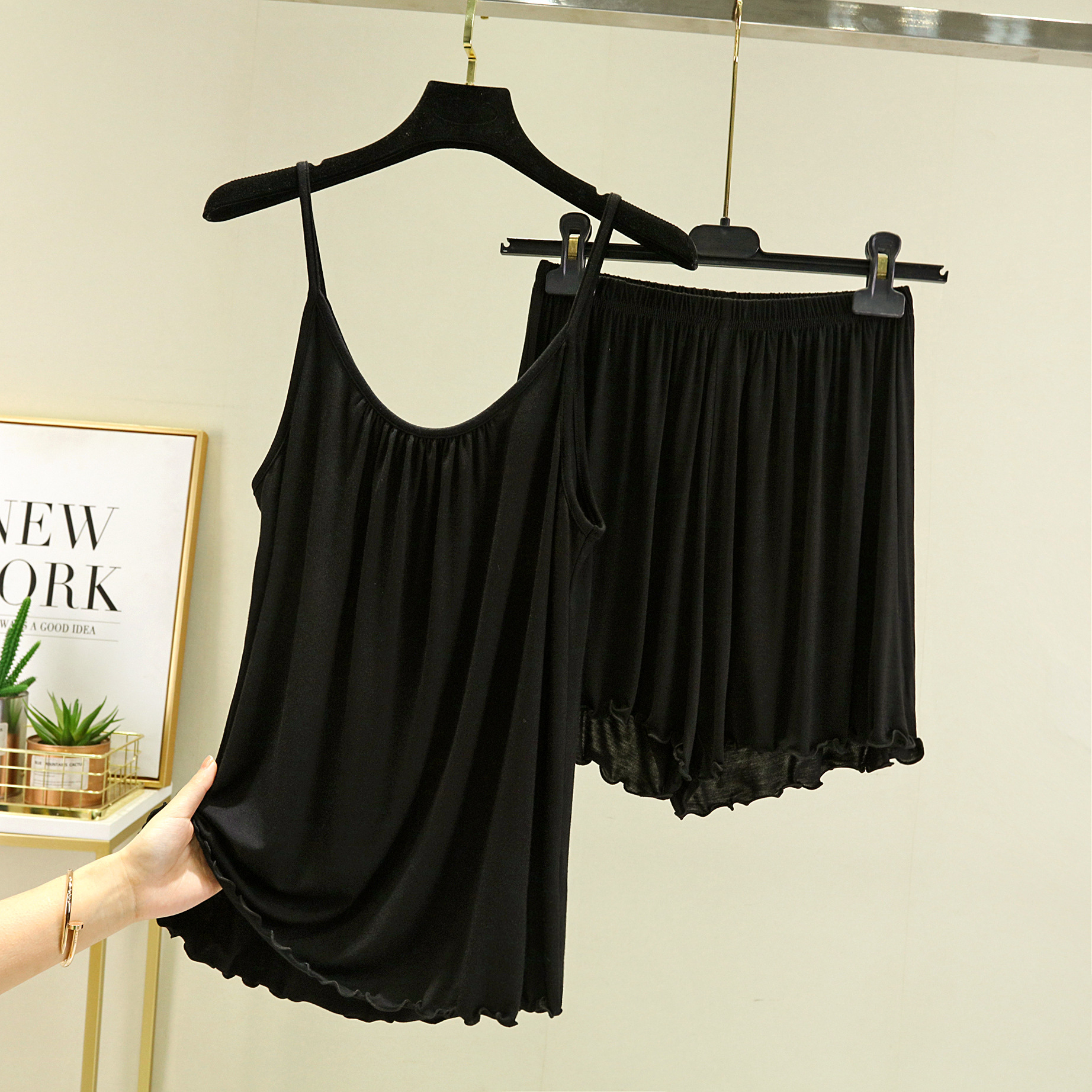모달 크루넥 핀치 플리츠 슬립 탑 플래시사이드 반바지 홈웨어 여름 얇은 캐주얼 플러스 사이즈 투피스 세트