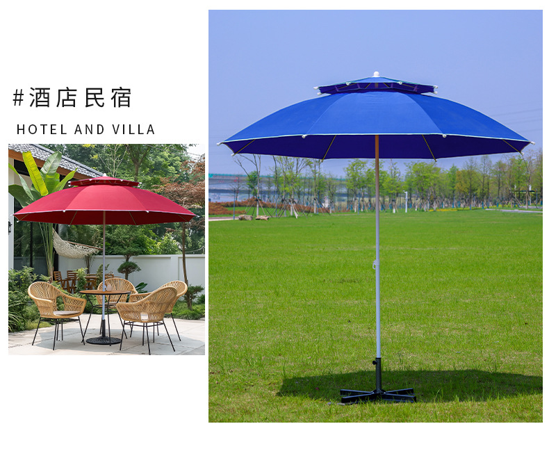 안뜰 대형 우산 야외 양산 마구간 우산 비치 우산 더블 탑 우산 폴리 에스테르 광고 우산 맞춤 제조 업체 도매스토어 가기