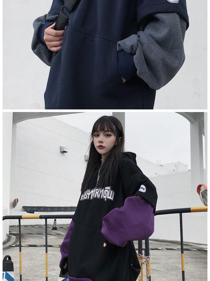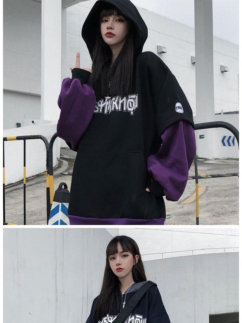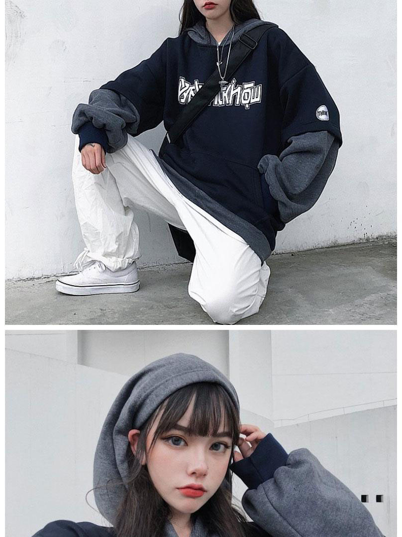 가짜 투피스 스웨터 여성의 한국 스타일 기모 두꺼운 봄과 가을 디자인 감각 유럽과 미국의 루즈한 탑 재킷스토어 가기