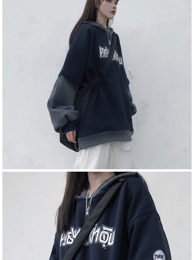 가짜 투피스 스웨터 여성의 한국 스타일 기모 두꺼운 봄과 가을 디자인 감각 유럽과 미국의 루즈한 탑 재킷