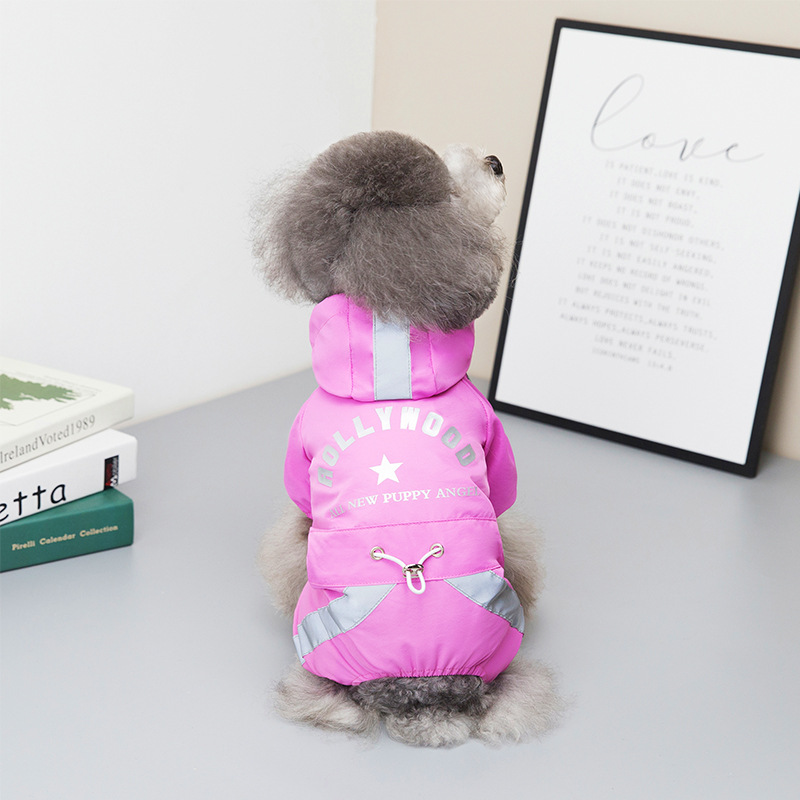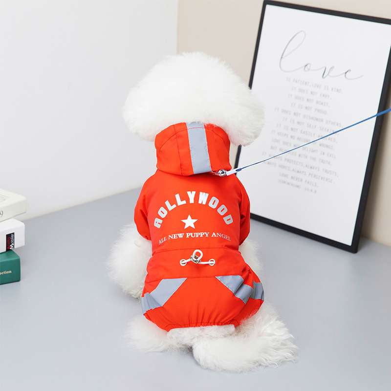 애완 동물 의류 여러 가지 빛깔의 비옷 테디 중소 개 의류 보메이 강아지 옷 걸이 가능한 견인 로프 크로스 테두리스토어 가기