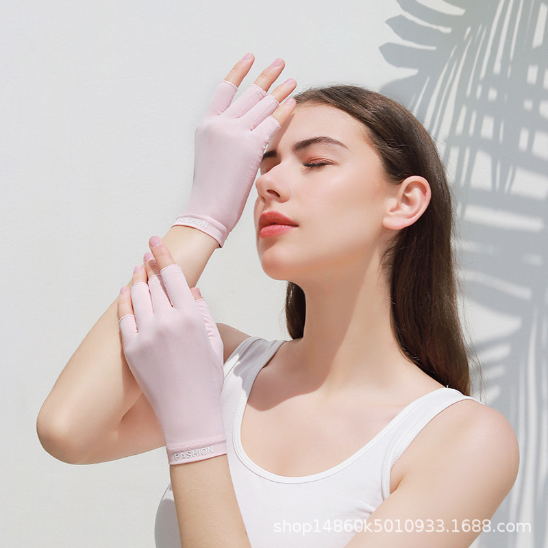 네일아트 보호 장갑, 여성용 여름 자외선 차단 통기성 아이스 실크, 손가락 노출형, 자외선 차단, 블랙닝 방지, 미끄럼 방지, 사이클링 및 운전용, 다섯 손가락스토어 가기