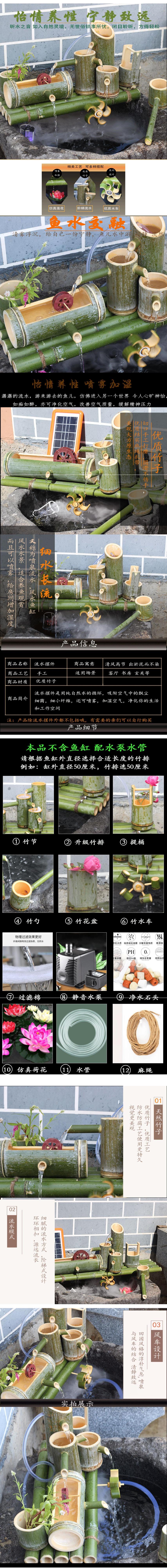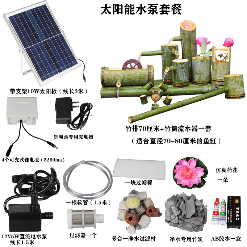 순환 시스템 대나무 물고기 연못 자동 태양 에너지 전기 물고기 탱크 물 필터 대나무 장식품이 아닌 풍경 물을 삽입스토어 가기