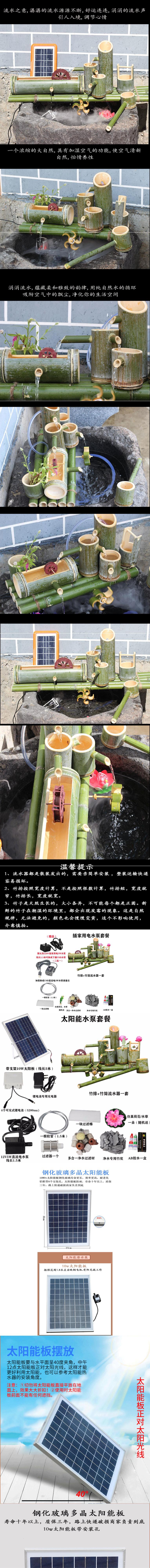 순환 시스템 대나무 물고기 연못 자동 태양 에너지 전기 물고기 탱크 물 필터 대나무 장식품이 아닌 풍경 물을 삽입