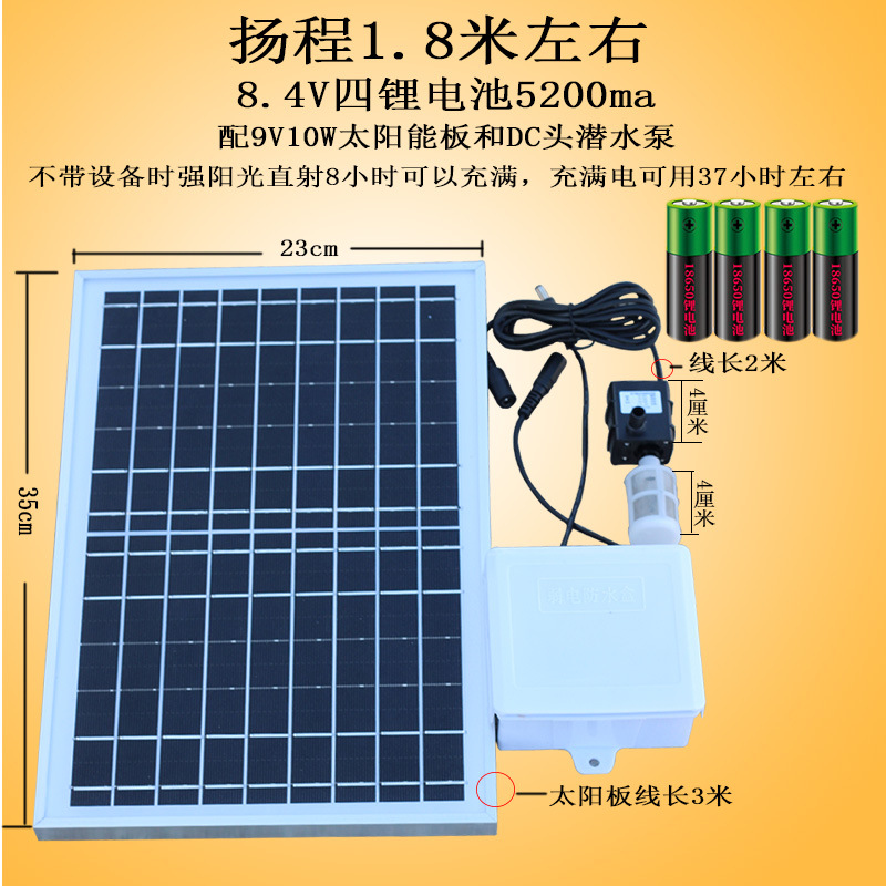 • 대나무 행 50cm 9v10W 태양 전지 패널 5w 펌프 4 리튬 배터리 펌프 헤드 1.8 미터