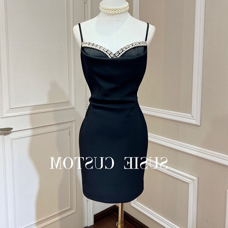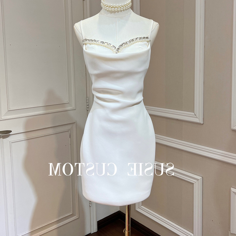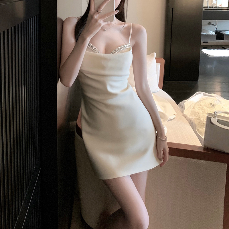 신상 중공업 진주 다이아몬드 슬립 드레스, 슬림하고 우아한 원피스, 섹시한 허리라인 파티 미니스커트