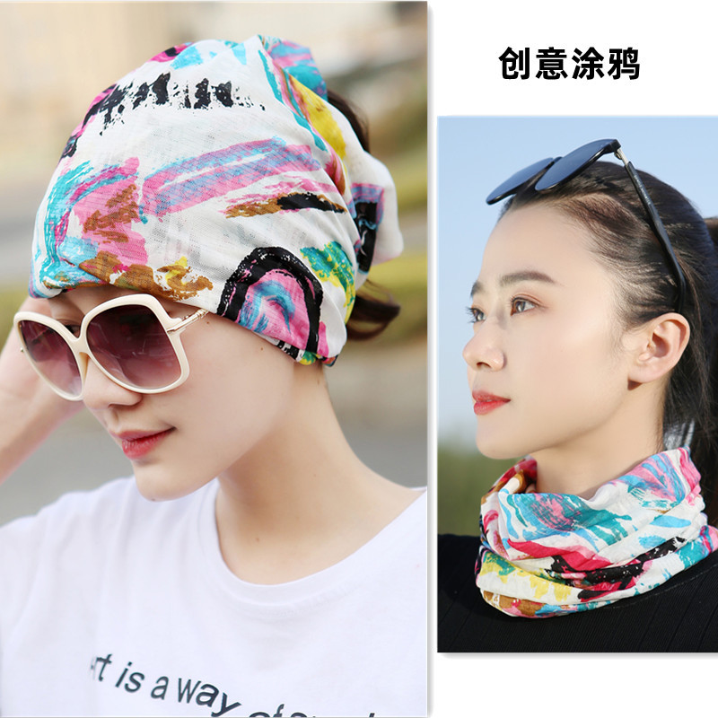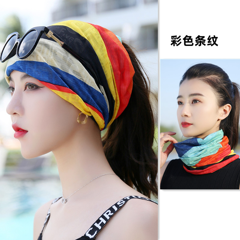 여름 자외선 차단제 아이스 실크 작은 스카프 여성용 경추 목 보호 스카프 머리띠 모자 얇고 따뜻한 모든 매치 넥 세트