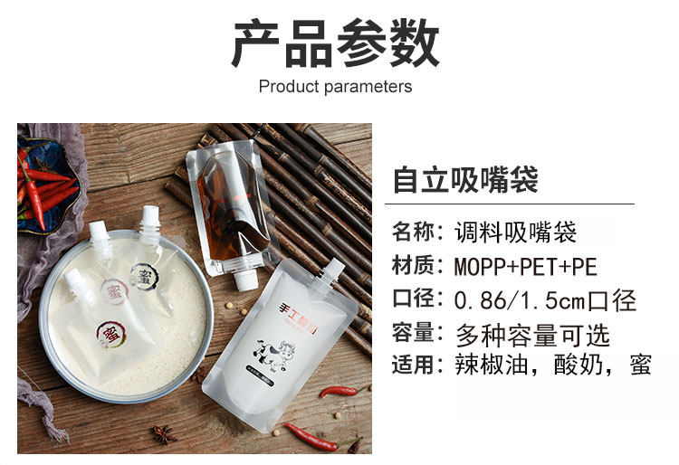 향신료 물 흡입 노즐 백 칠리 소스 꿀 수제 요구르트 자립 편리한 포장 백 식초 오일 소형 흡입 노즐 서브 백스토어 가기