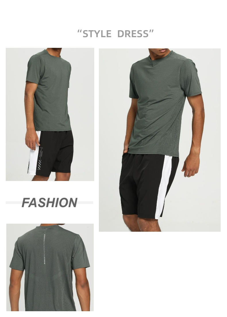 나일론 속건 의류 티셔츠 남성용 피트니스 런닝 느슨한 라운드 넥 여름 아이스 실크 트레이닝 의류 베이스 스포츠 반팔 남성용