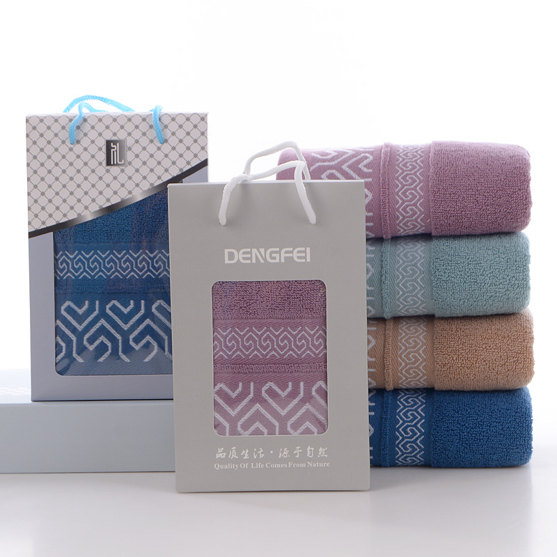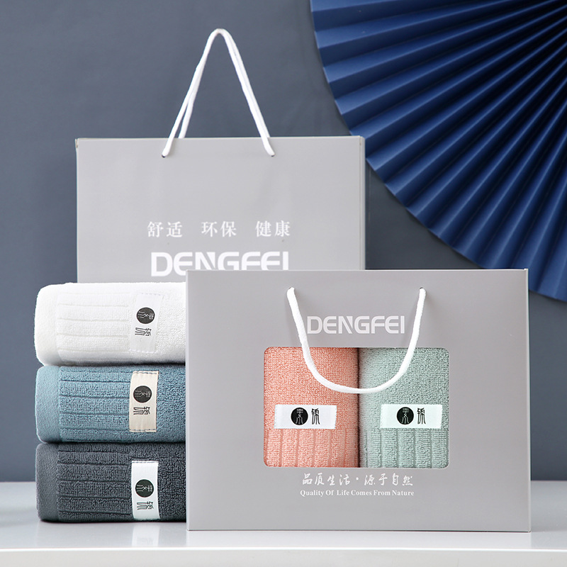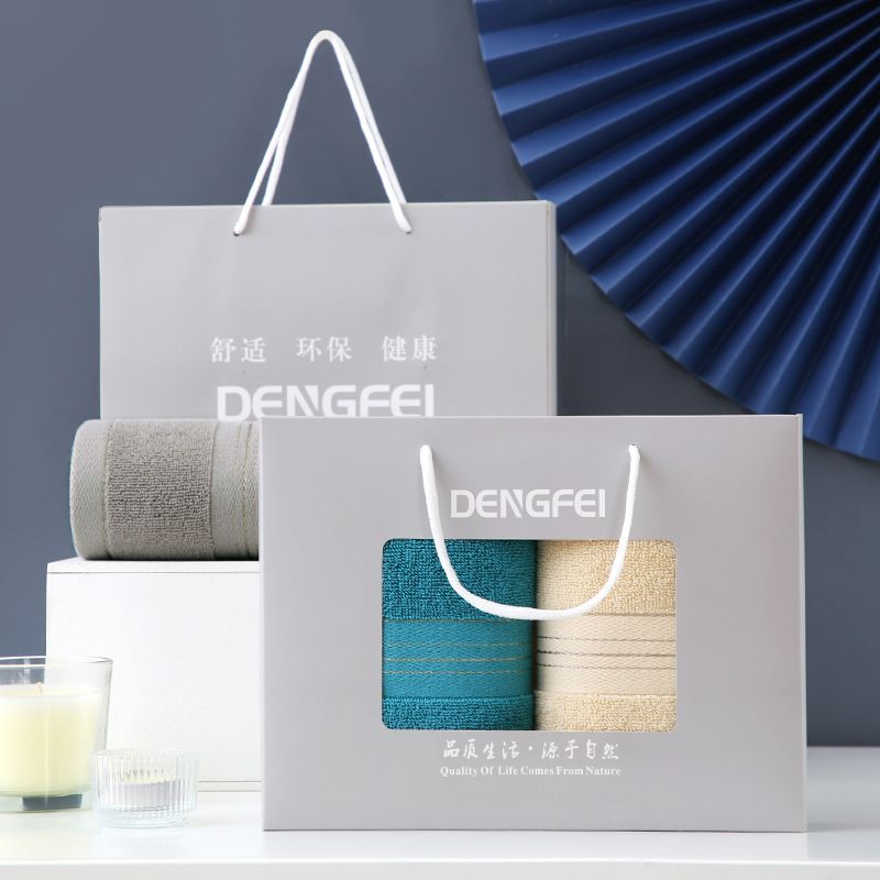 선물 상자 면 두꺼운 수건 주괴로 만든 로고 면 흡수성 선물 광고 수건 세트 뒤 선물 얼굴 수건스토어 가기