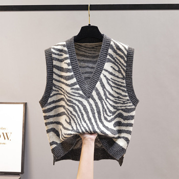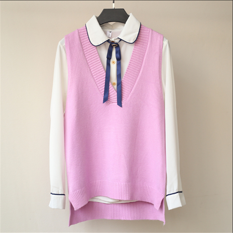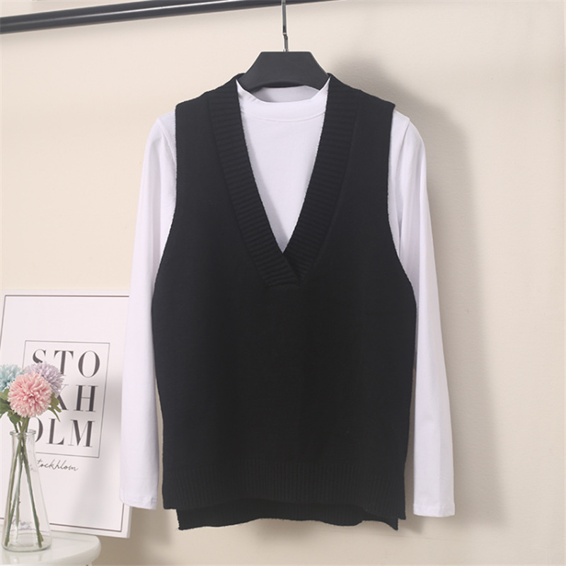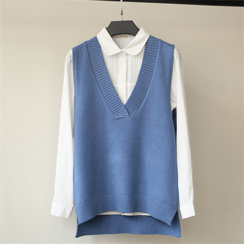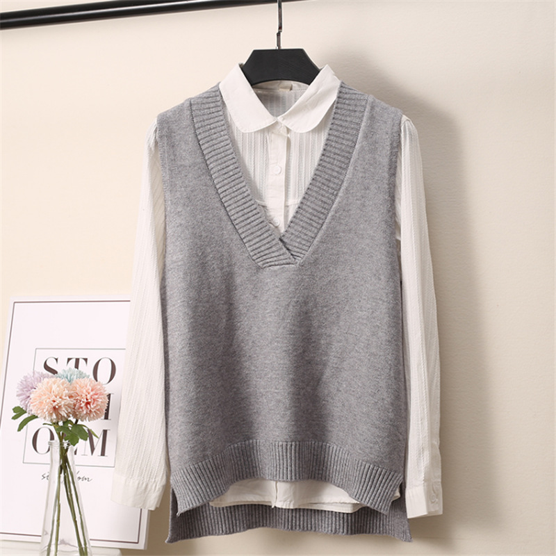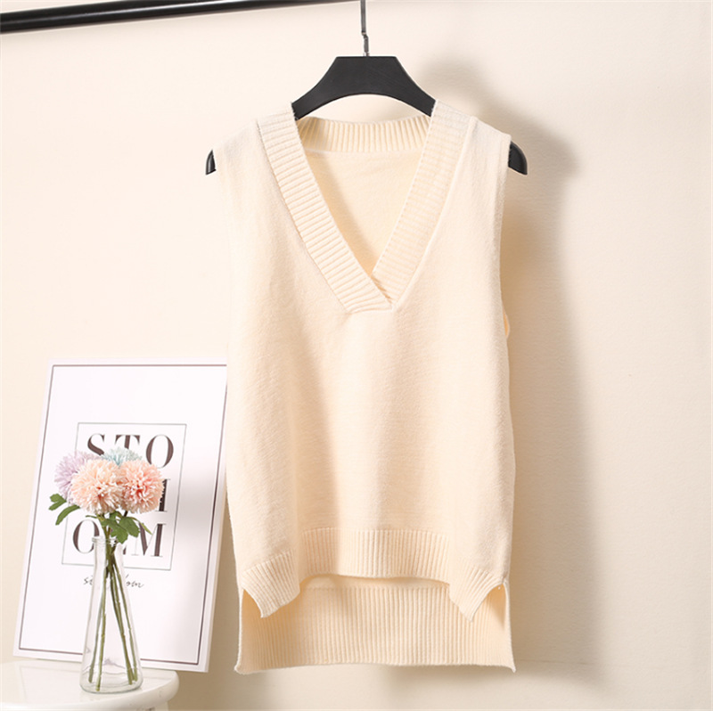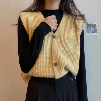 春秋新款纯色针织背心韩版宽松v领毛衣马甲女中长款百搭毛线坎肩