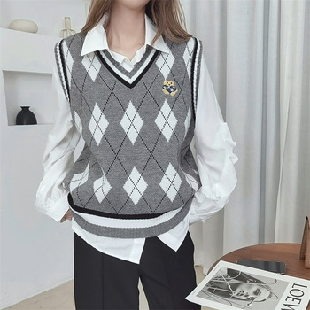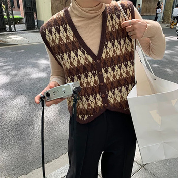 니트 조끼 여성용 V넥 솔리드 컬러 민소매 조끼 2026 봄 가을 신상 심플 풀오버 스웨터 조끼 탑 V넥스토어 가기