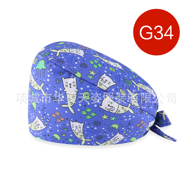 외과 모자 여성 면 간호사 모자 의사 모자 Baotou 라운드 캡 치과 구강 수술 수술실 툴링 모자 남성스토어 가기