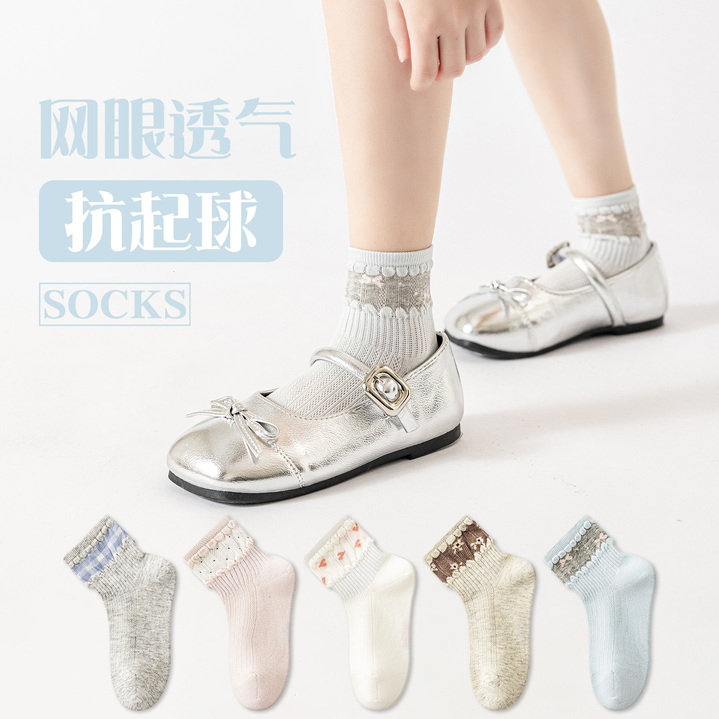 2026 봄 신상 아동 양말 여아용 얇은 레이스 통기성 메쉬 양말 리본 아동 양말 도매