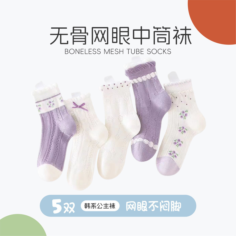 2026 봄 신상 아동 양말 여아용 얇은 레이스 통기성 메쉬 양말 리본 아동 양말 도매스토어 가기