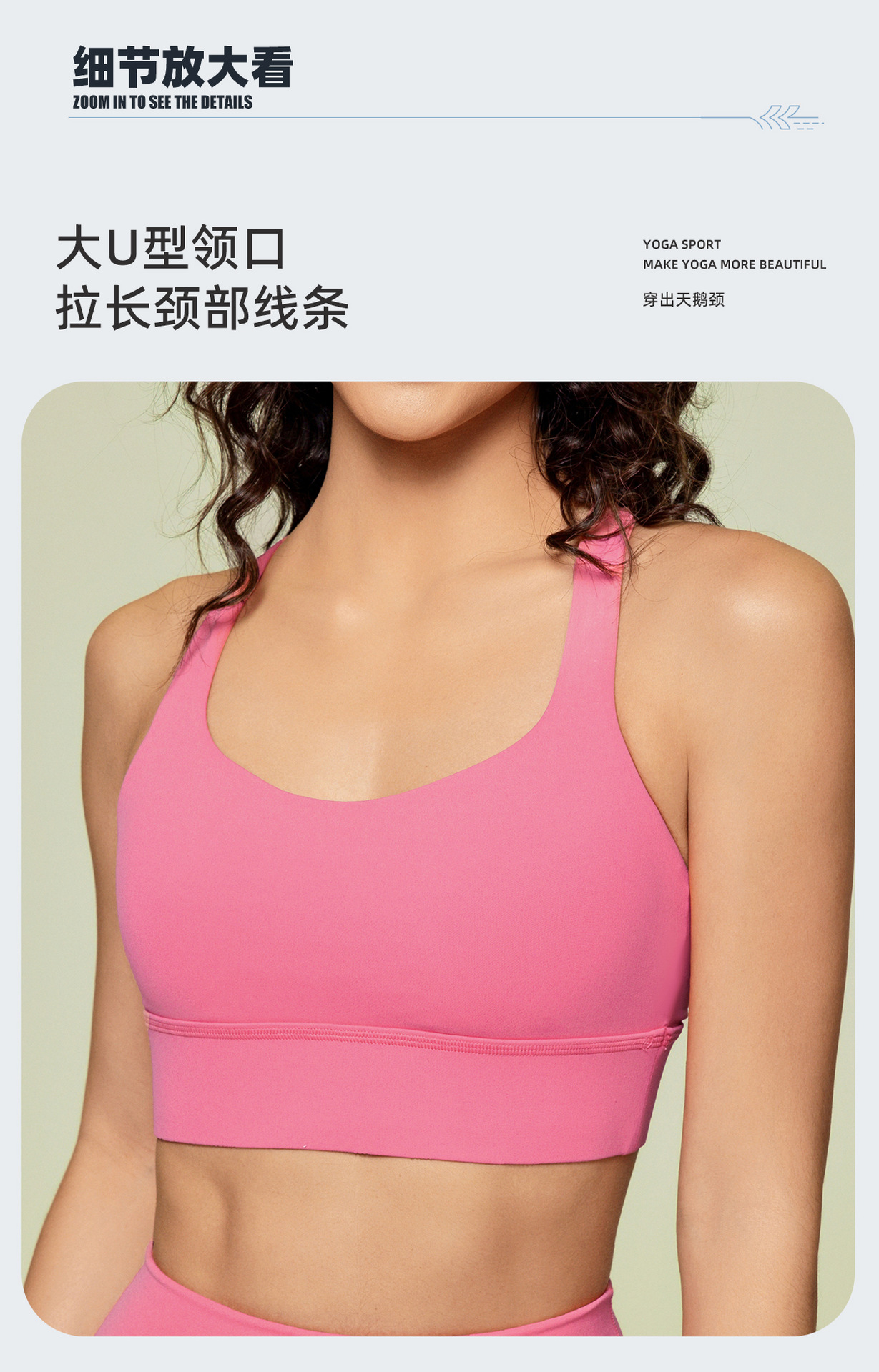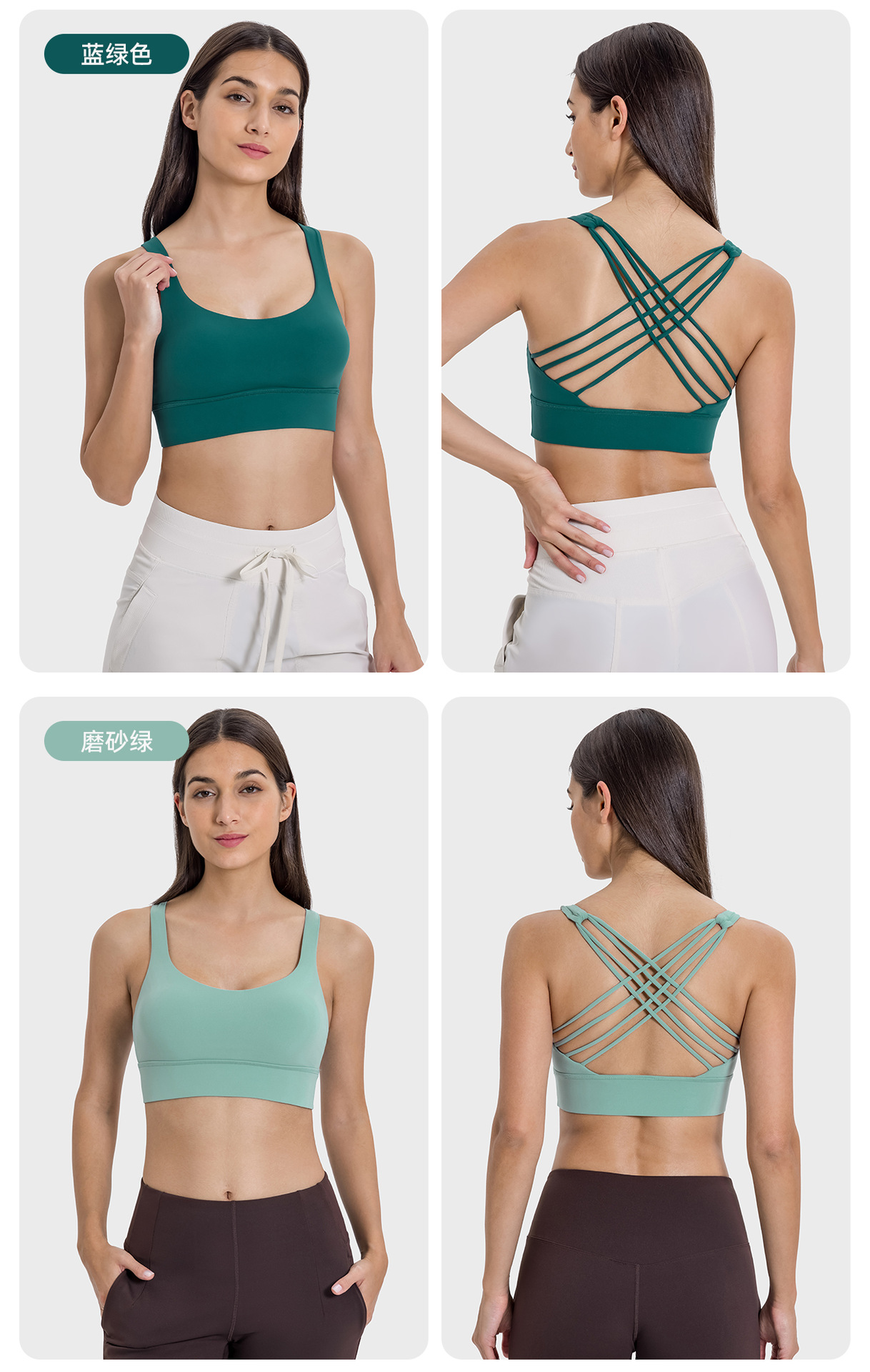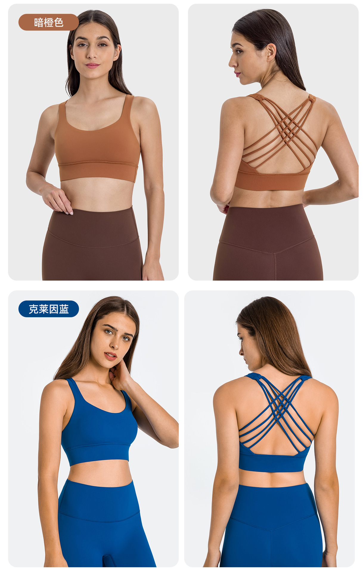 스틸 크로스백이 없는 넓은 밑단 스포츠 브라, 충격 방지 푸쉬업 요가 피트니스 브라, 얇은 스트랩 S2010