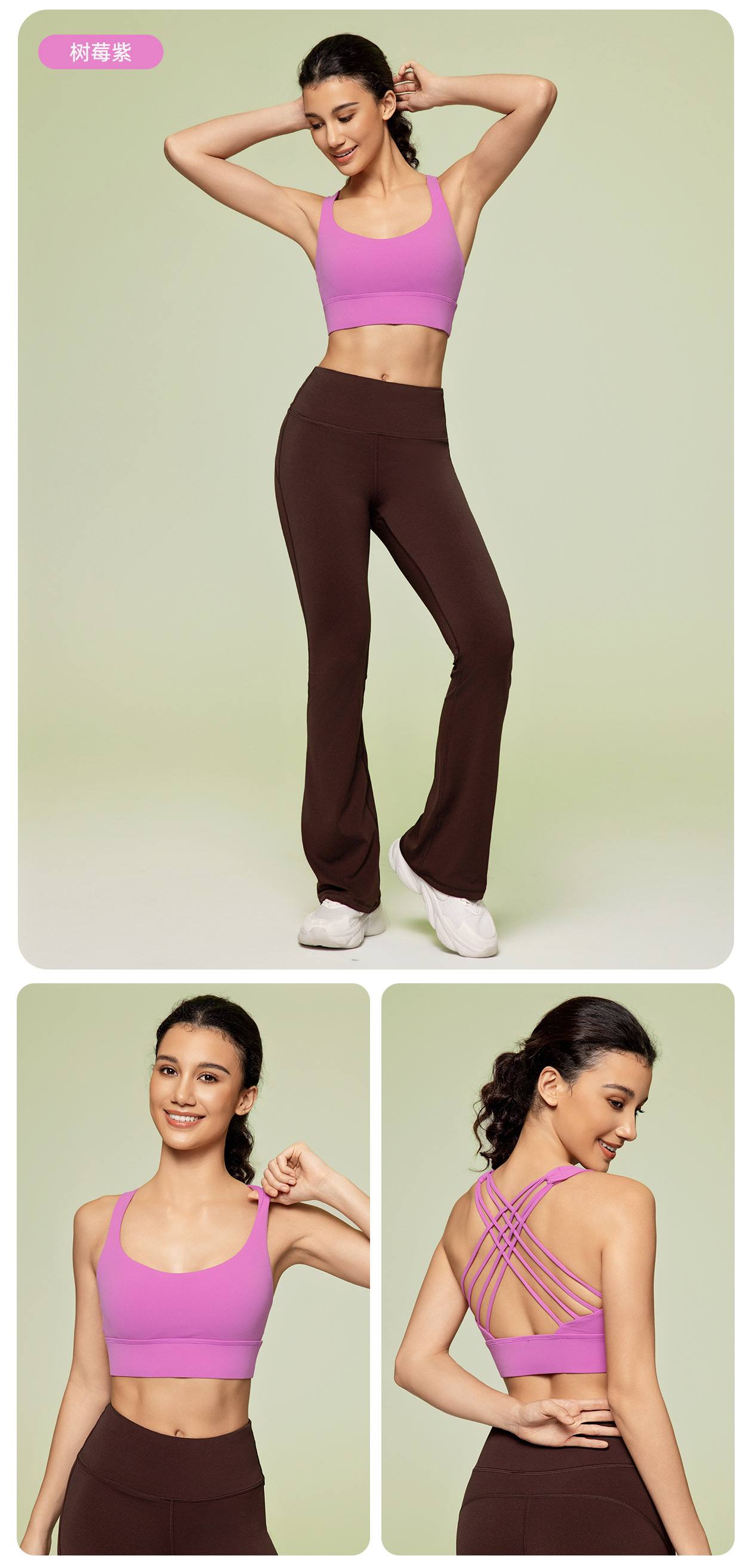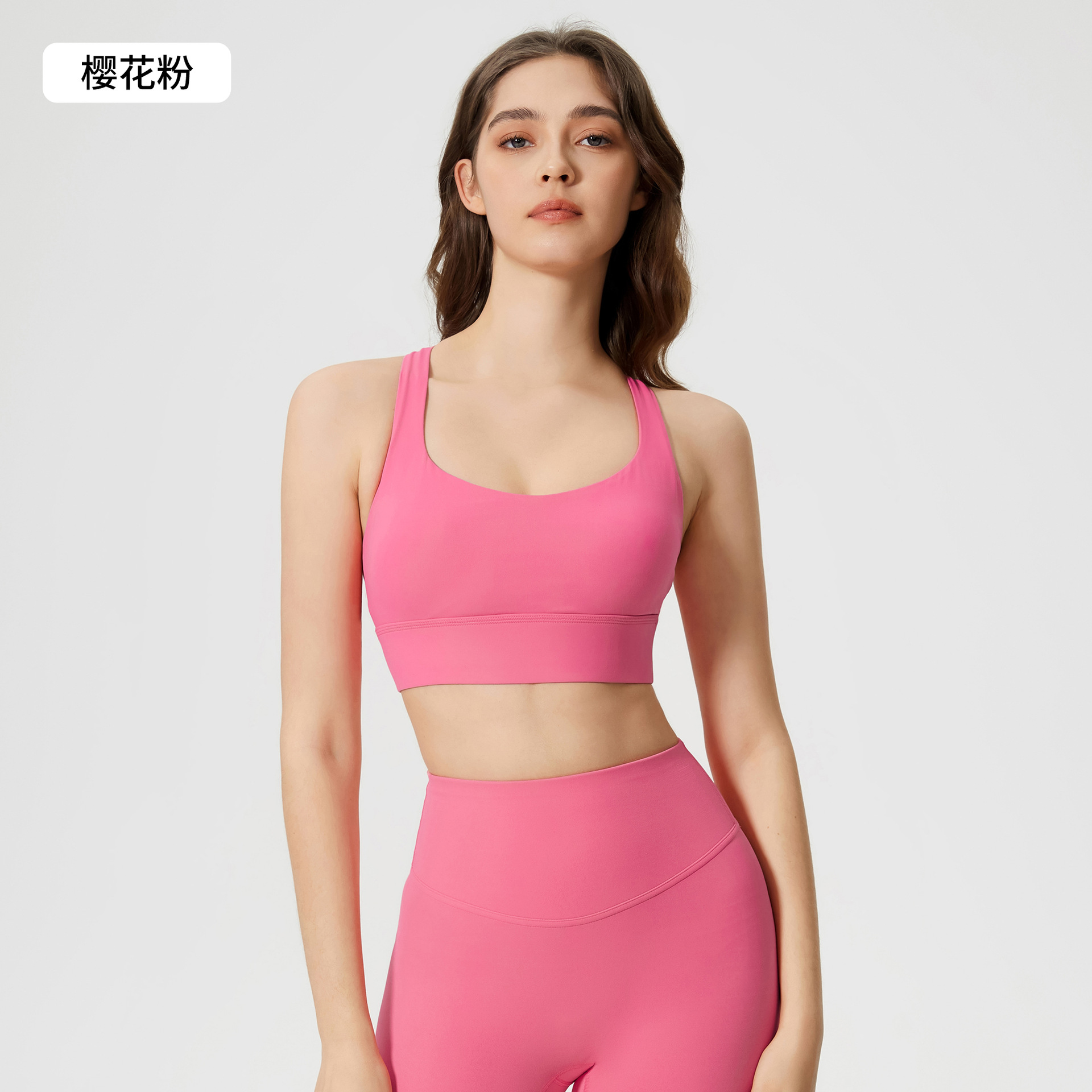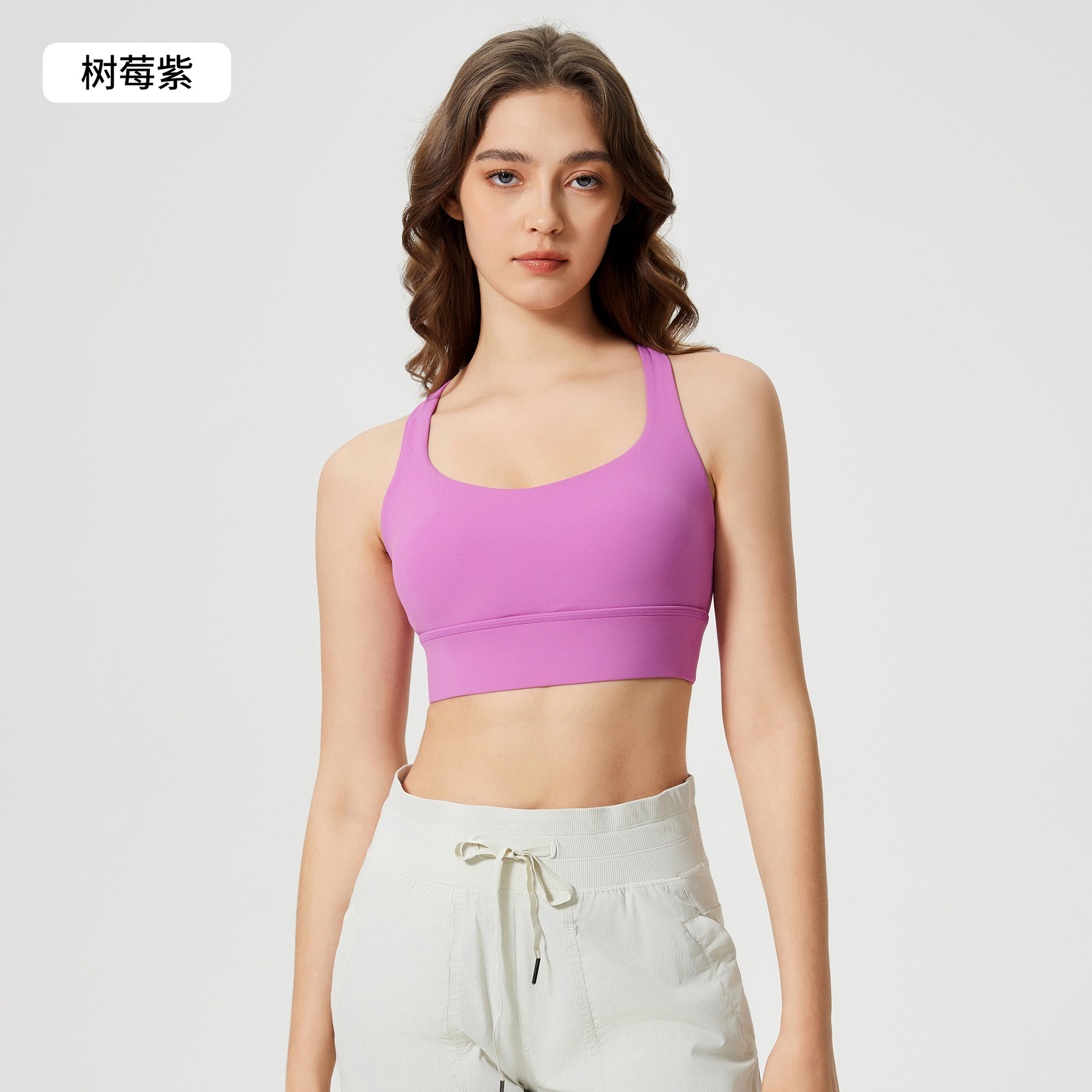 스틸 크로스백이 없는 넓은 밑단 스포츠 브라, 충격 방지 푸쉬업 요가 피트니스 브라, 얇은 스트랩 S2010