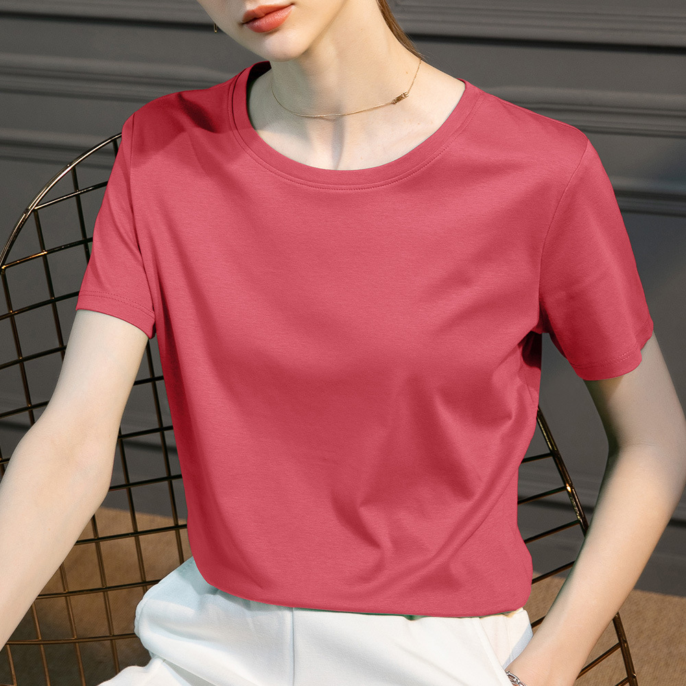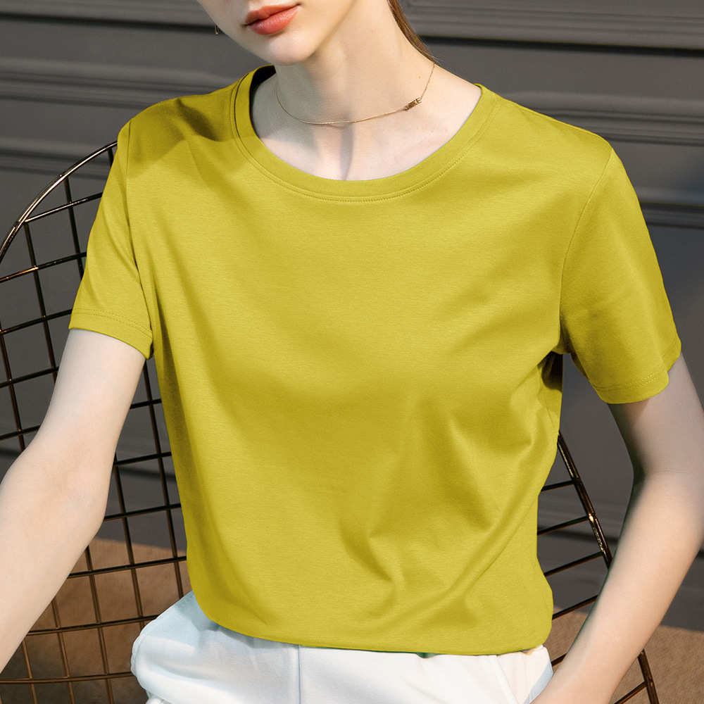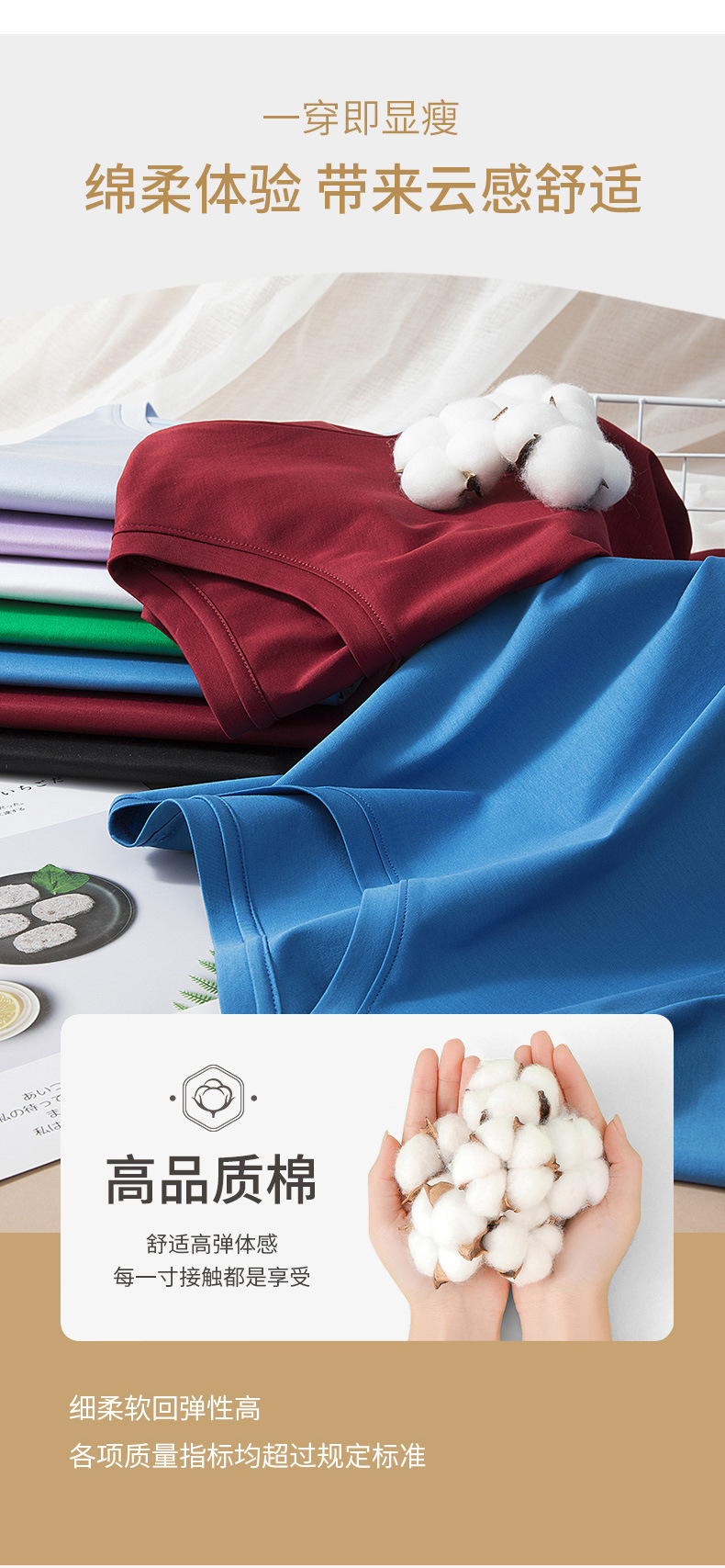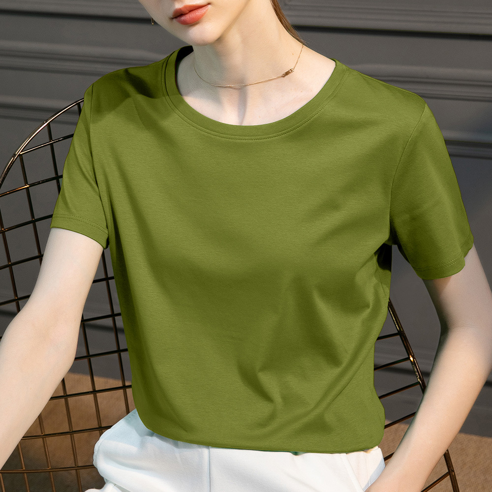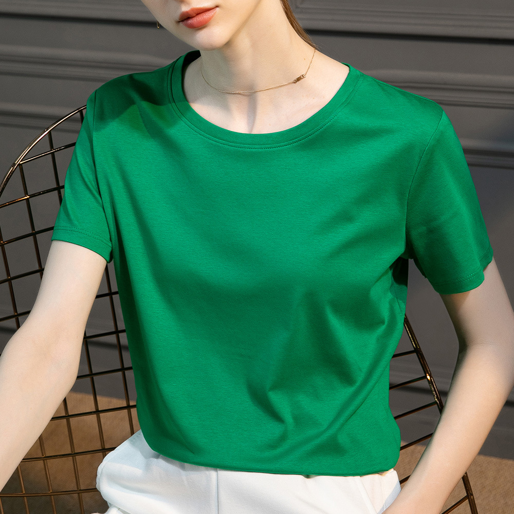 高支桑蚕丝丝光棉t恤女宽松女装圆领修身显瘦短袖V领白色上衣女