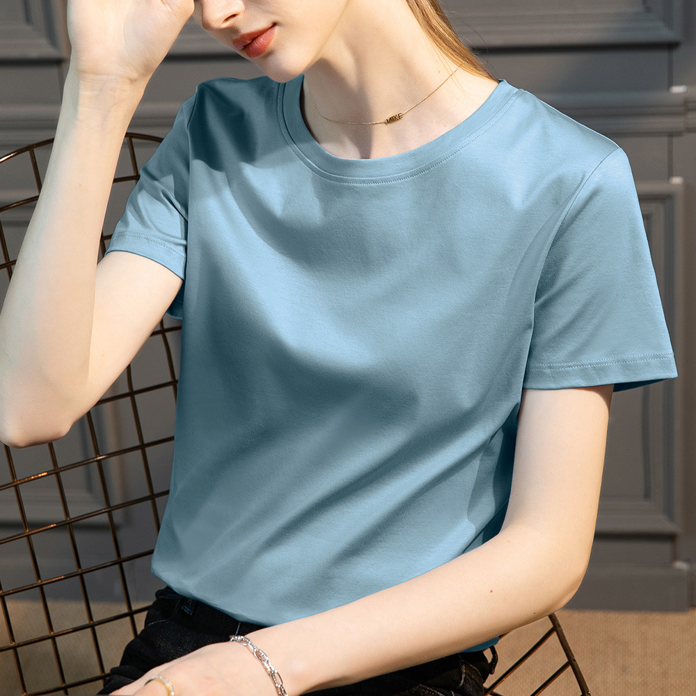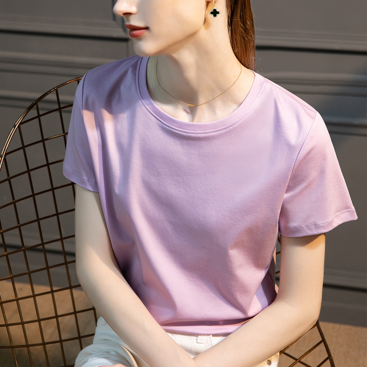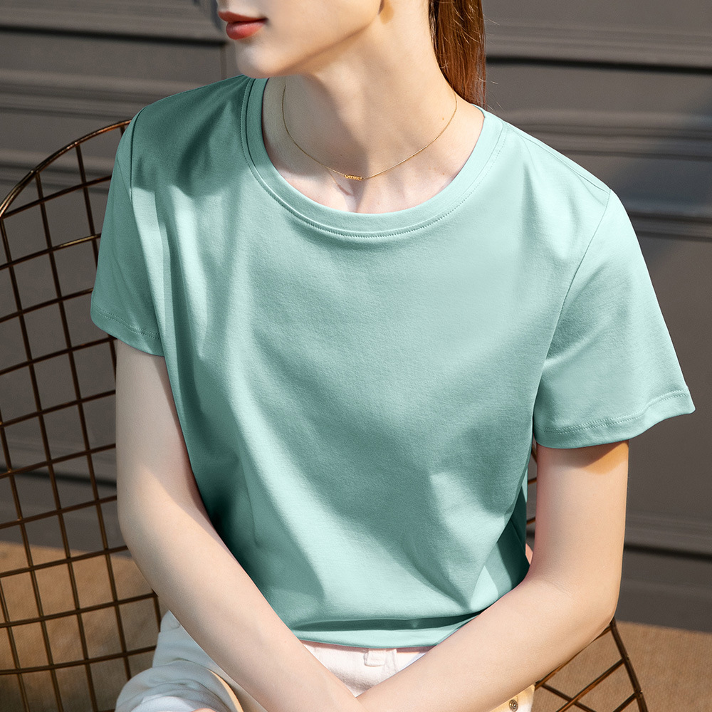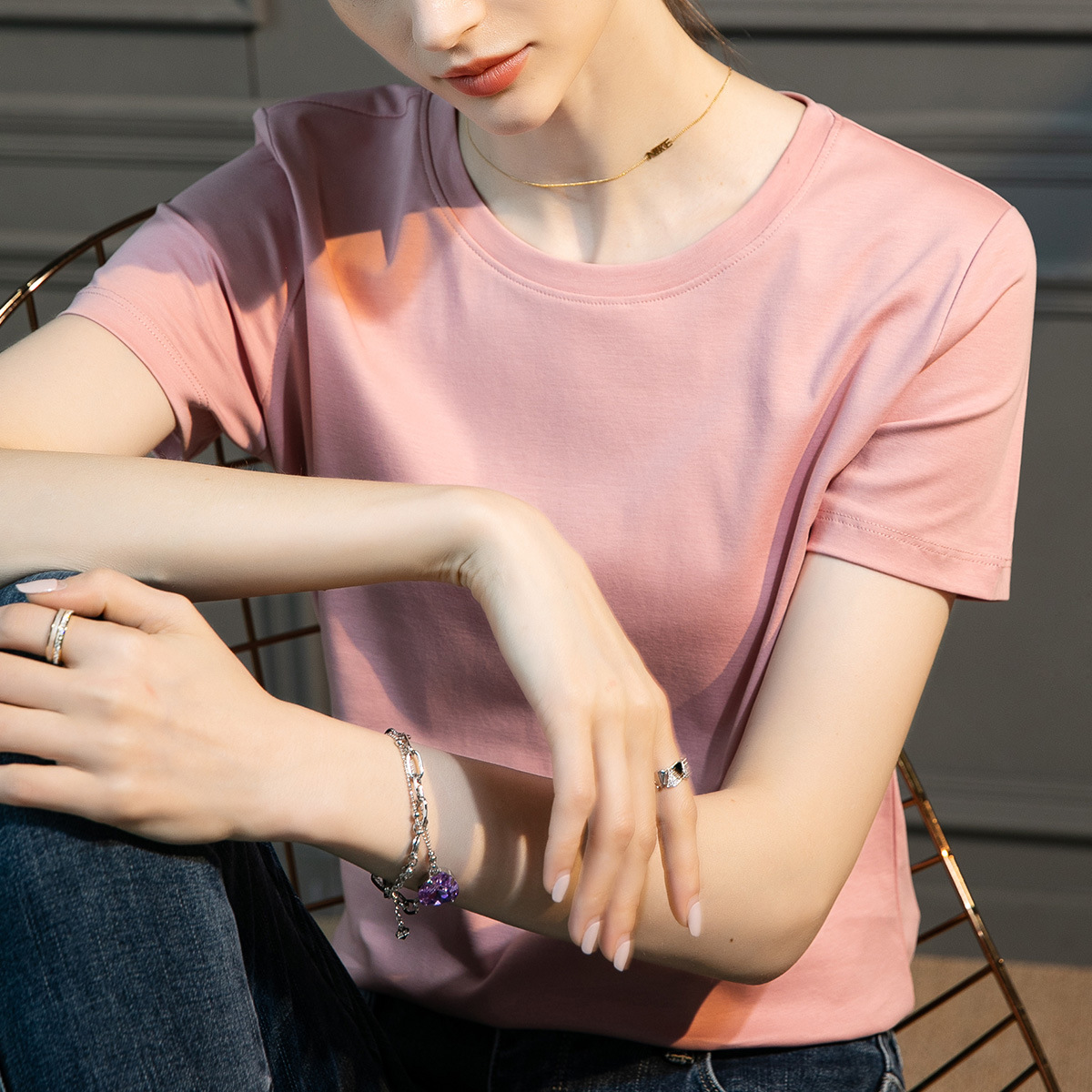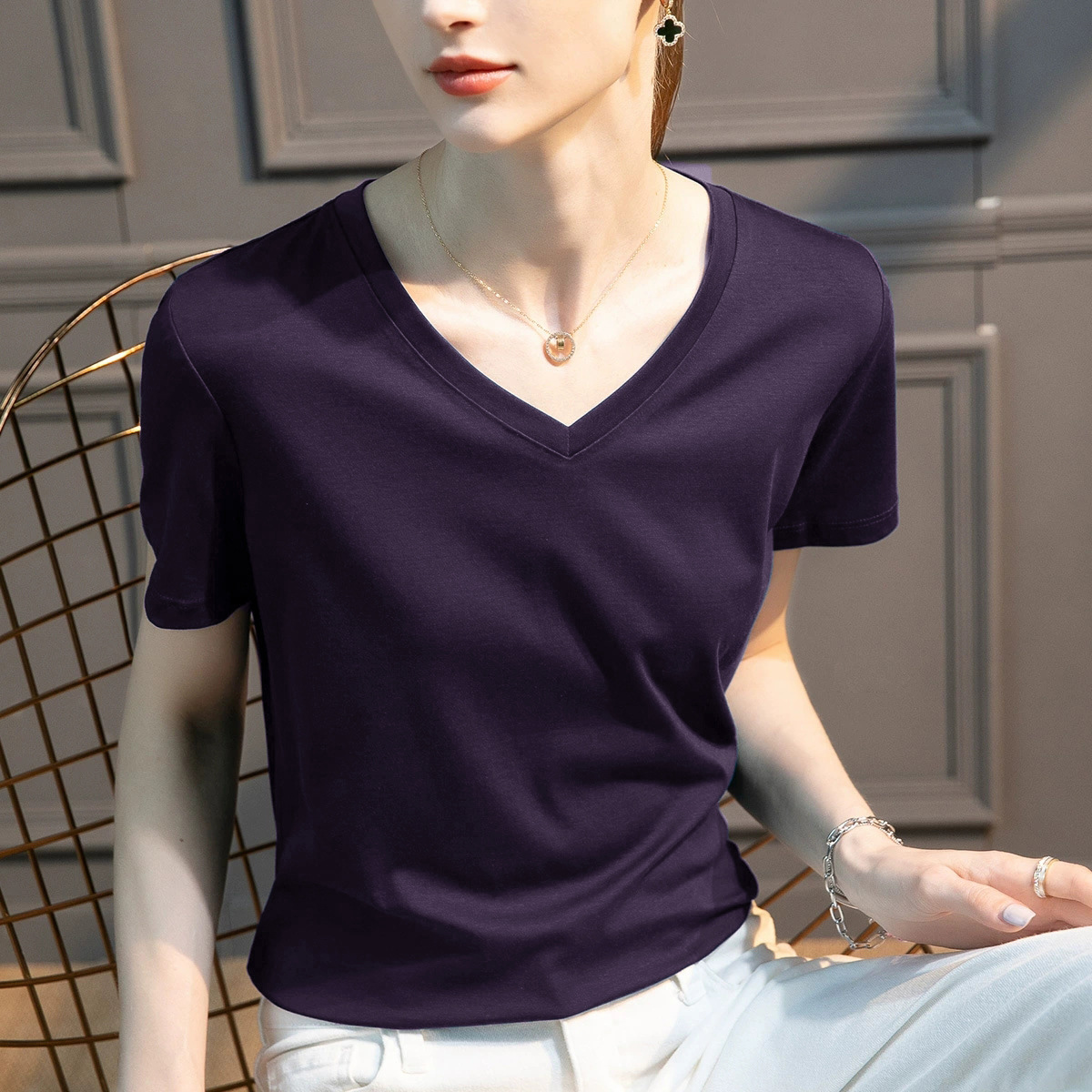 하이 80 양면 머서라이즈면 반팔 흰색 티셔츠 여성 여름 여성의 느슨한 크루 넥 V 넥 다재다능한 티셔츠 1688