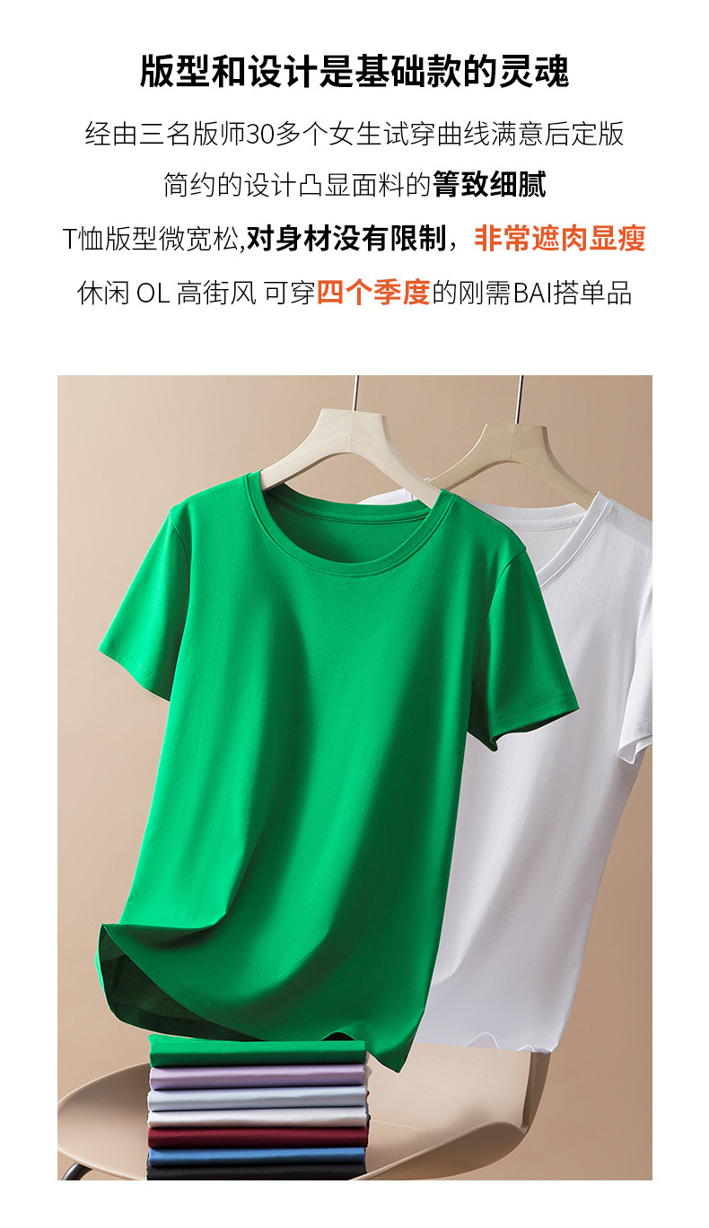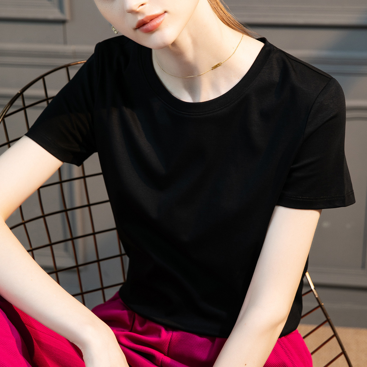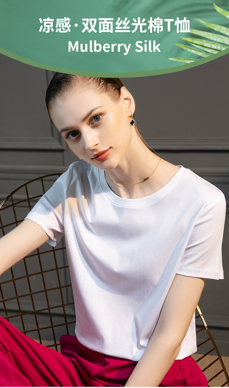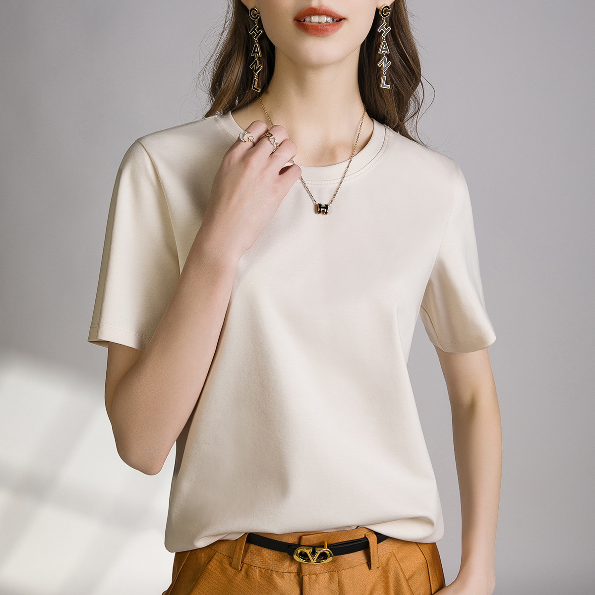 商场同款液氨白色短袖正肩t恤女 25春夏丝光棉圆领打底衫体恤半袖