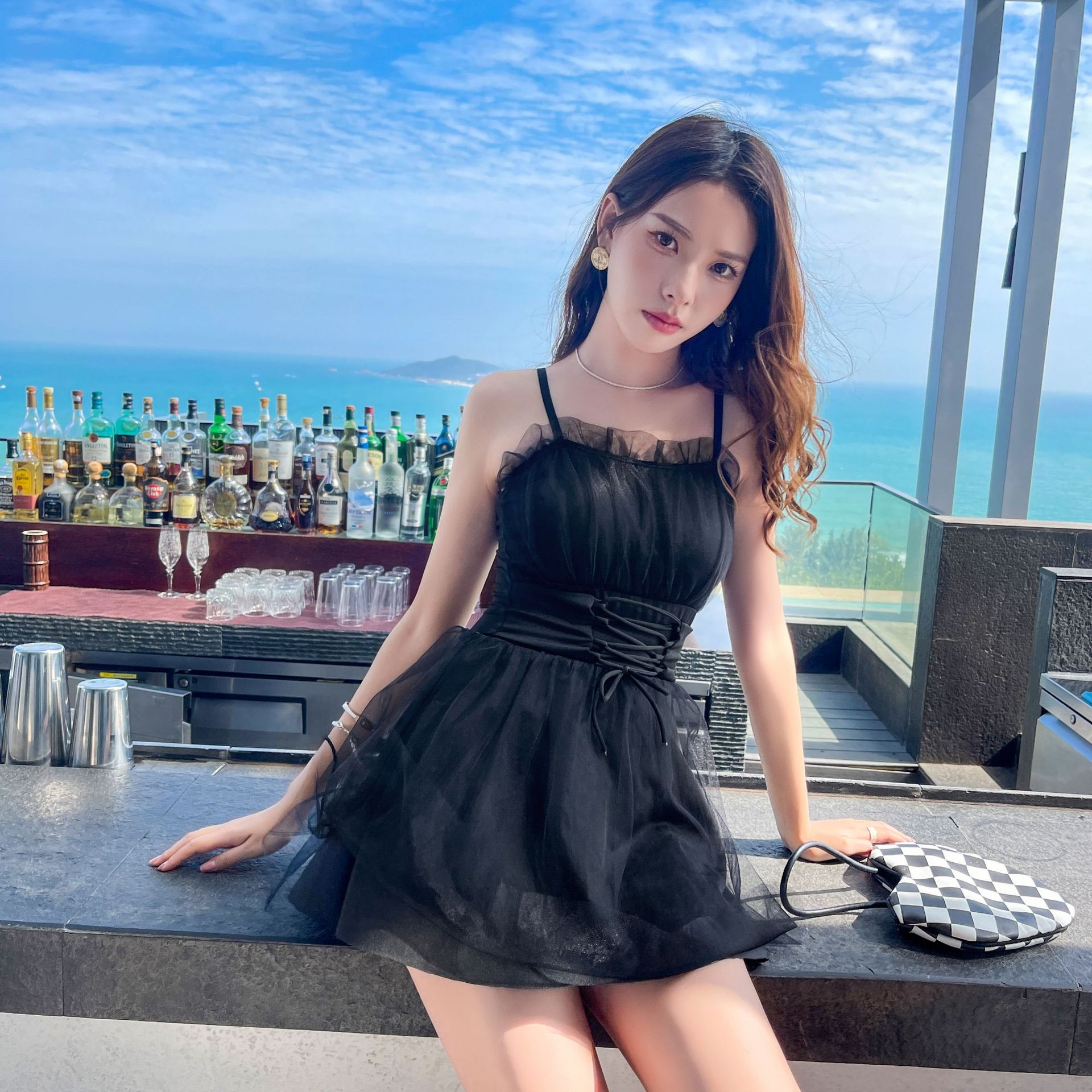 수영복 여성 2024 새로운 수영복 여성 여름 거즈 스커트 원피스 서스펜더 섹시한 요정 스타일 슬리밍 여성스토어 가기
