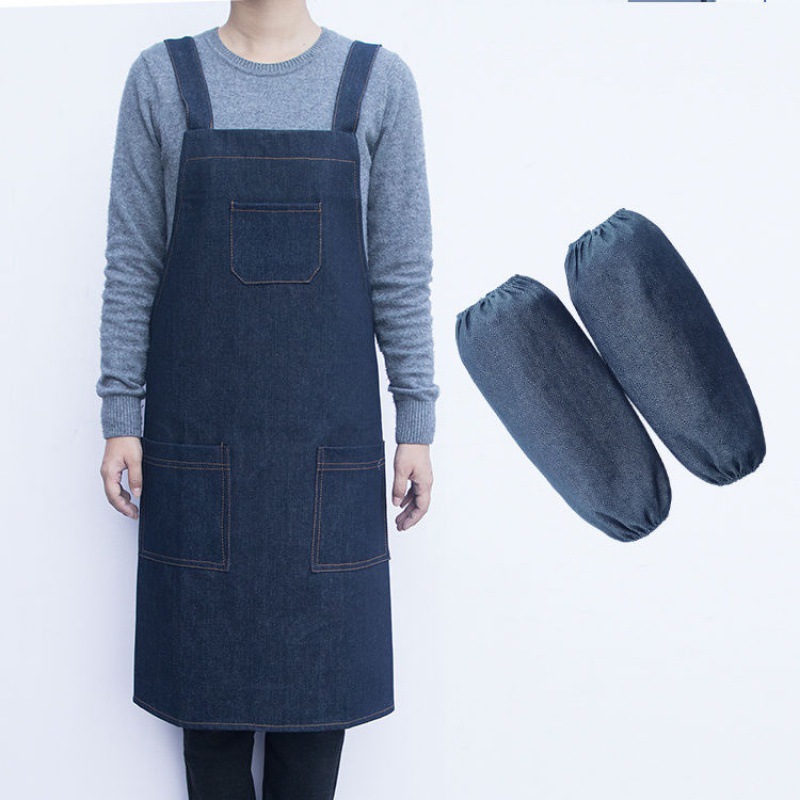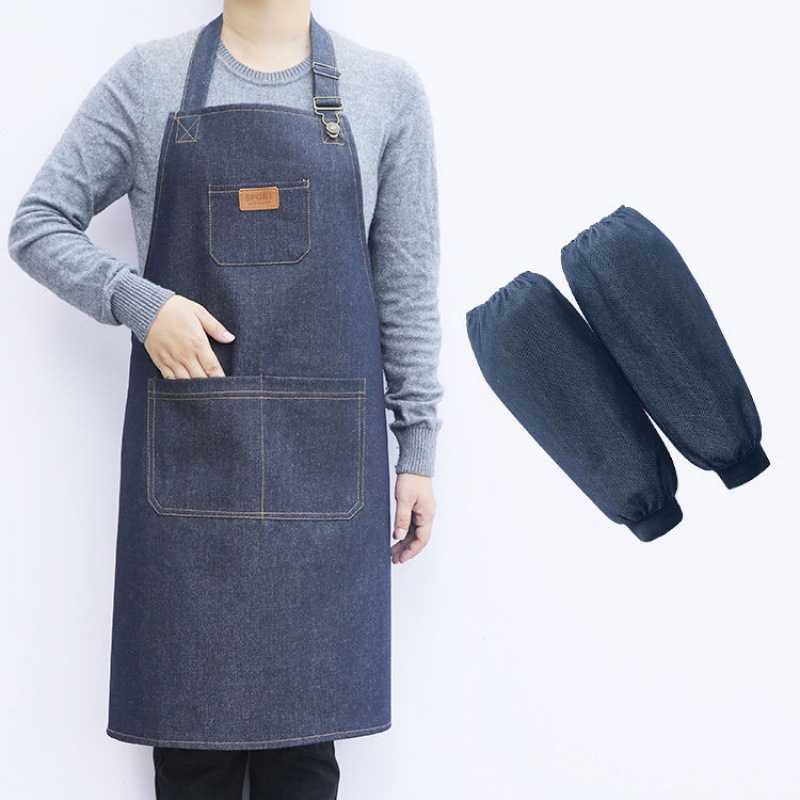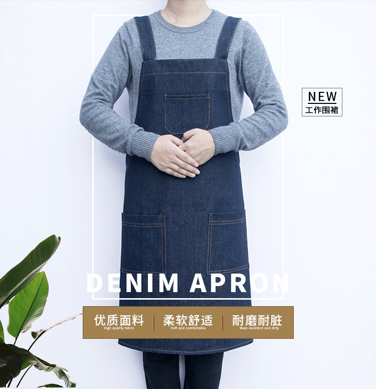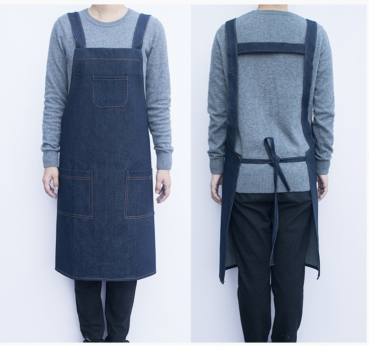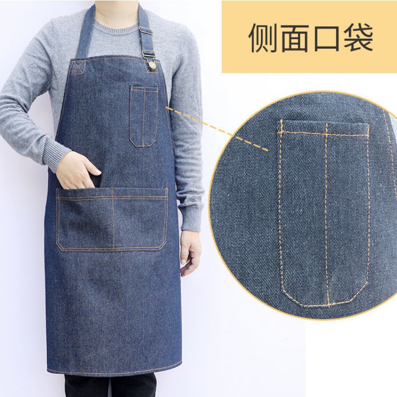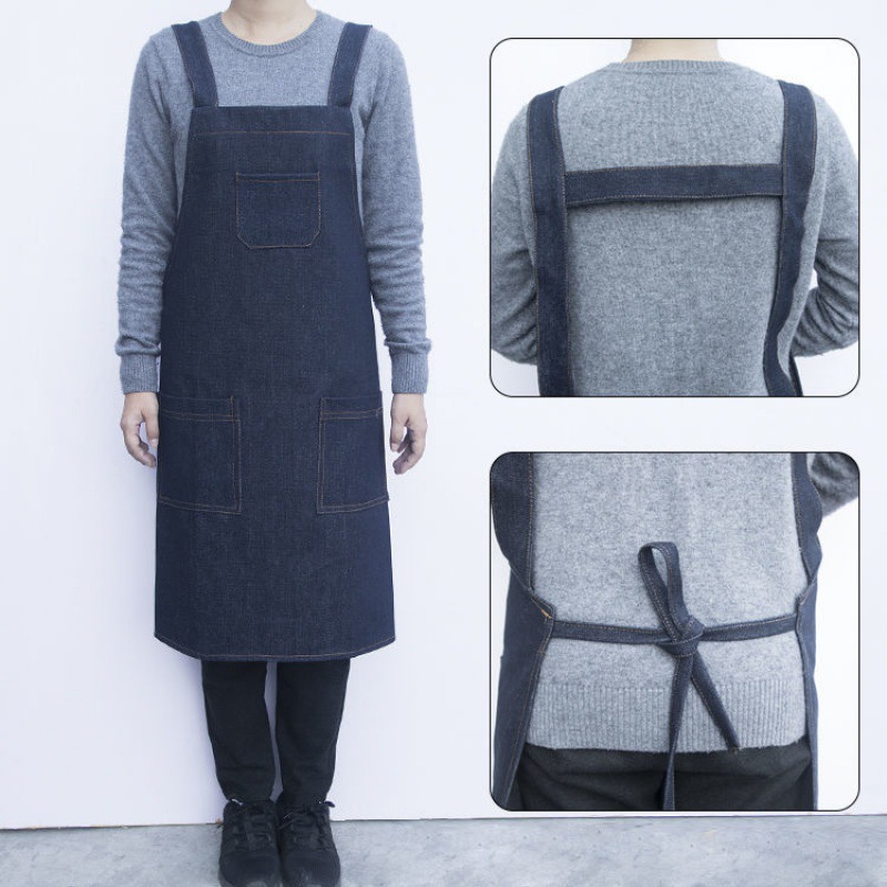 요리사 앞치마 데님 작업 한국 패션 남성과 여성의 주방 레스토랑 밀크 티 샵 바리 스타 방오 스트랩스토어 가기