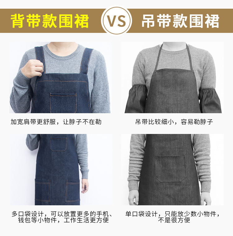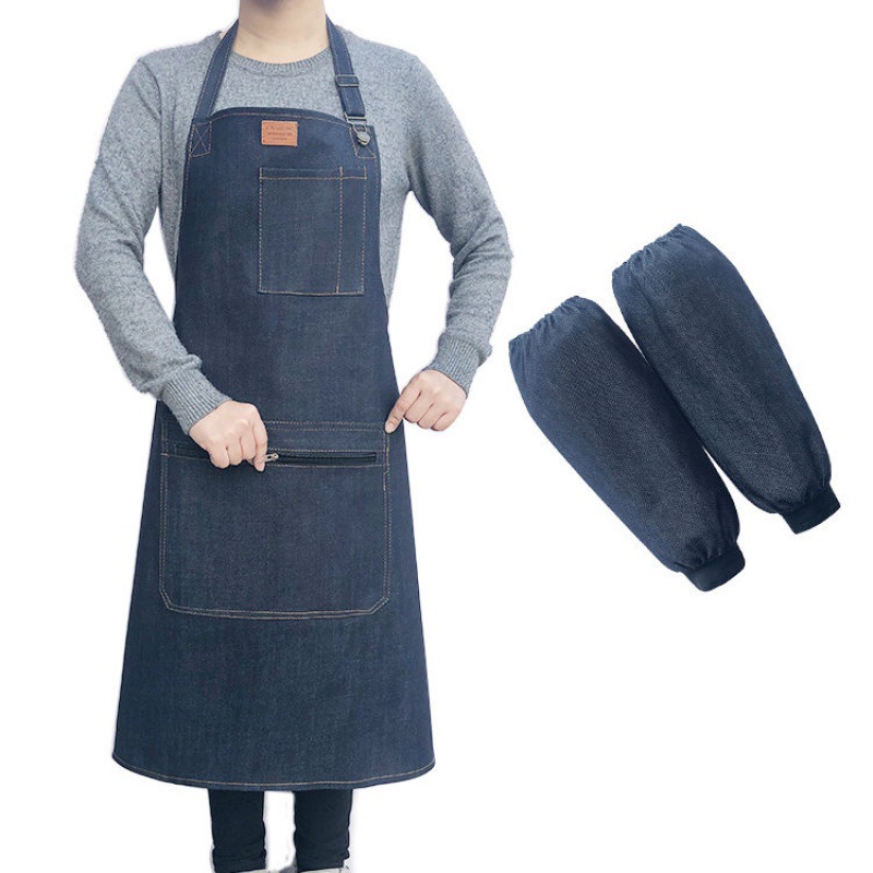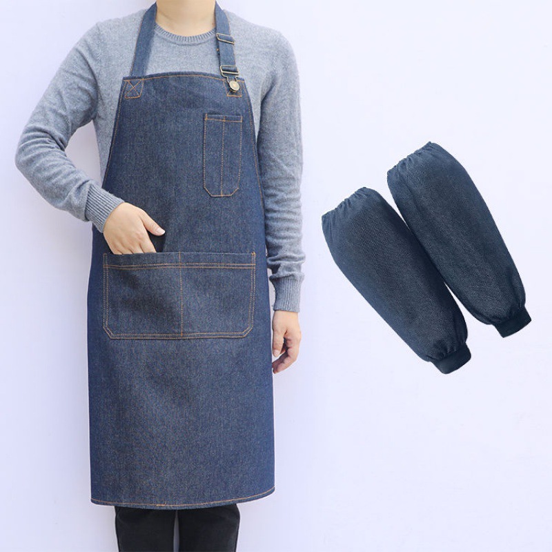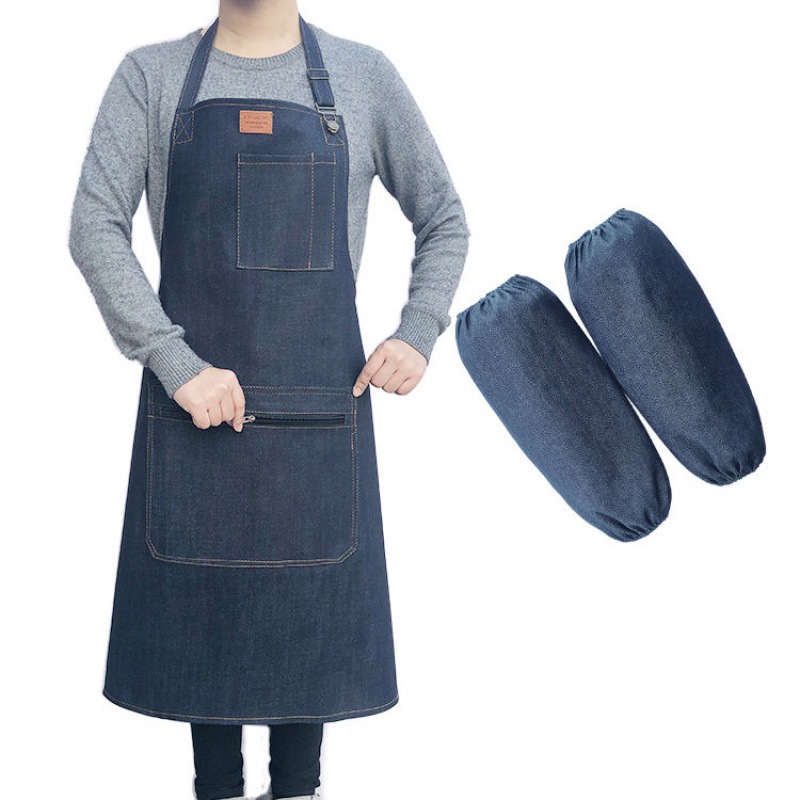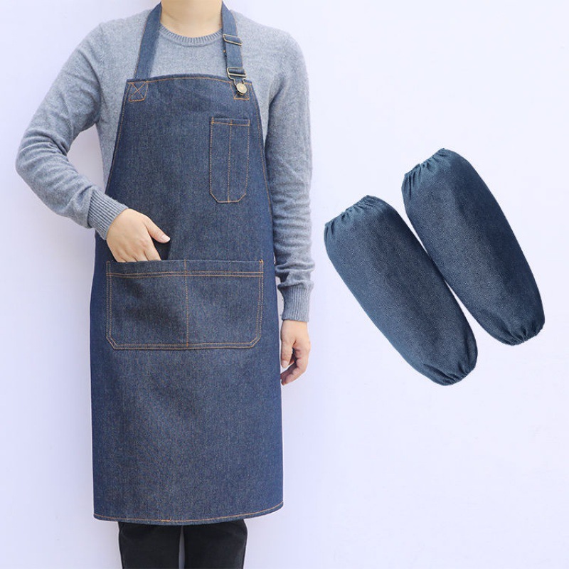 요리사 앞치마 데님 작업 한국 패션 남성과 여성의 주방 레스토랑 밀크 티 샵 바리 스타 방오 스트랩스토어 가기