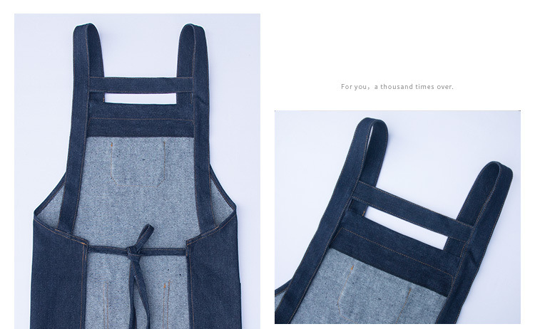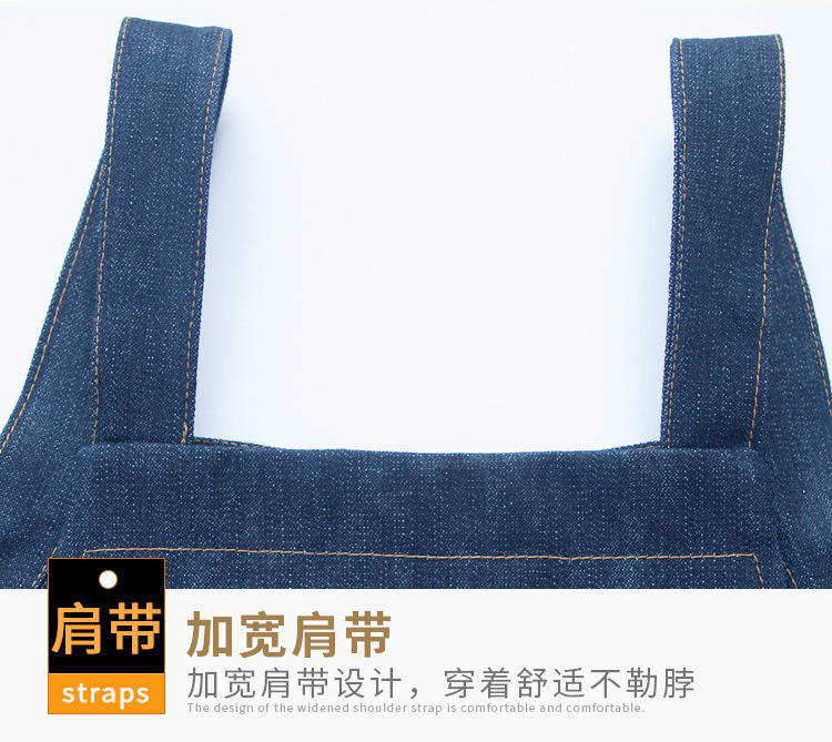 요리사 앞치마 데님 작업 한국 패션 남성과 여성의 주방 레스토랑 밀크 티 샵 바리 스타 방오 스트랩
