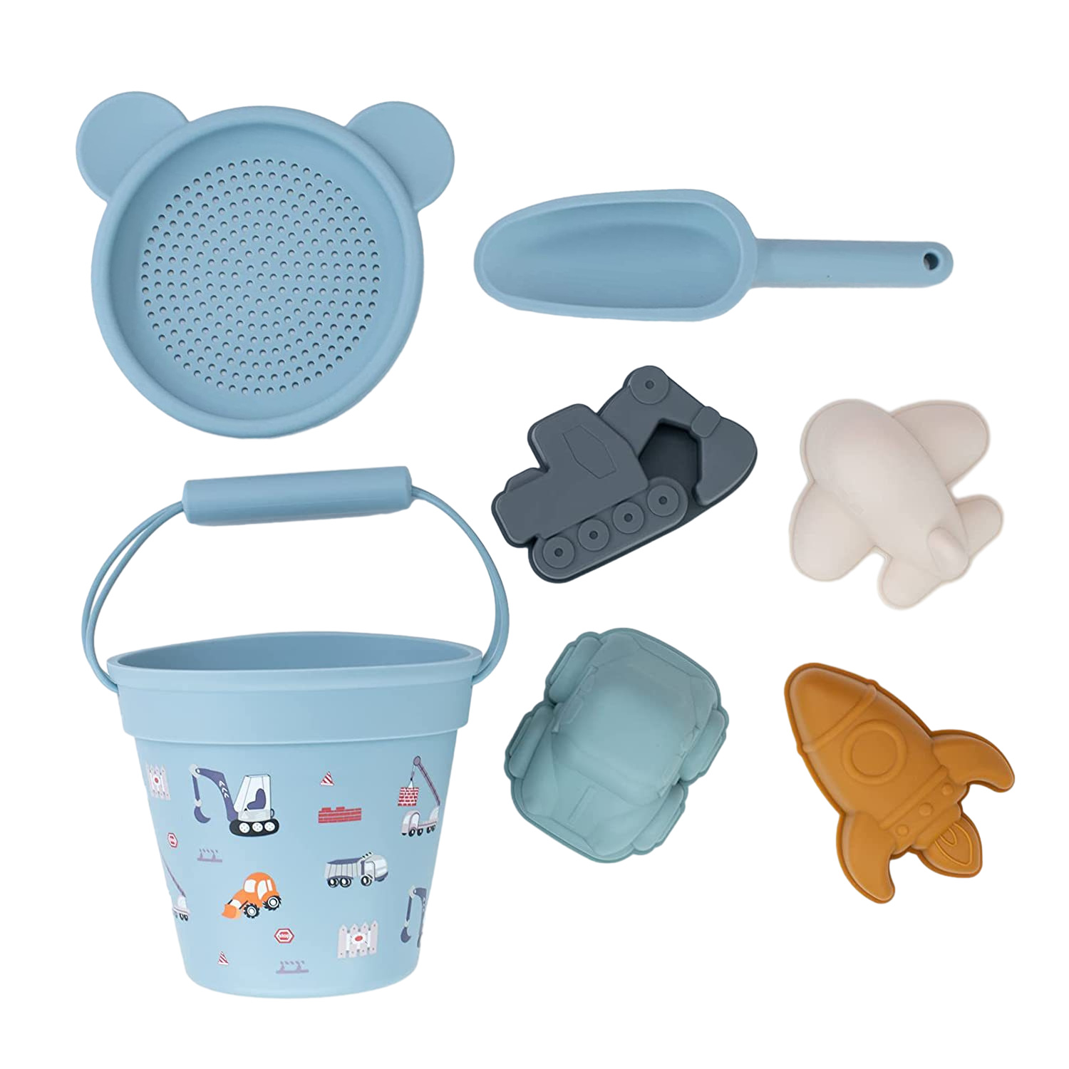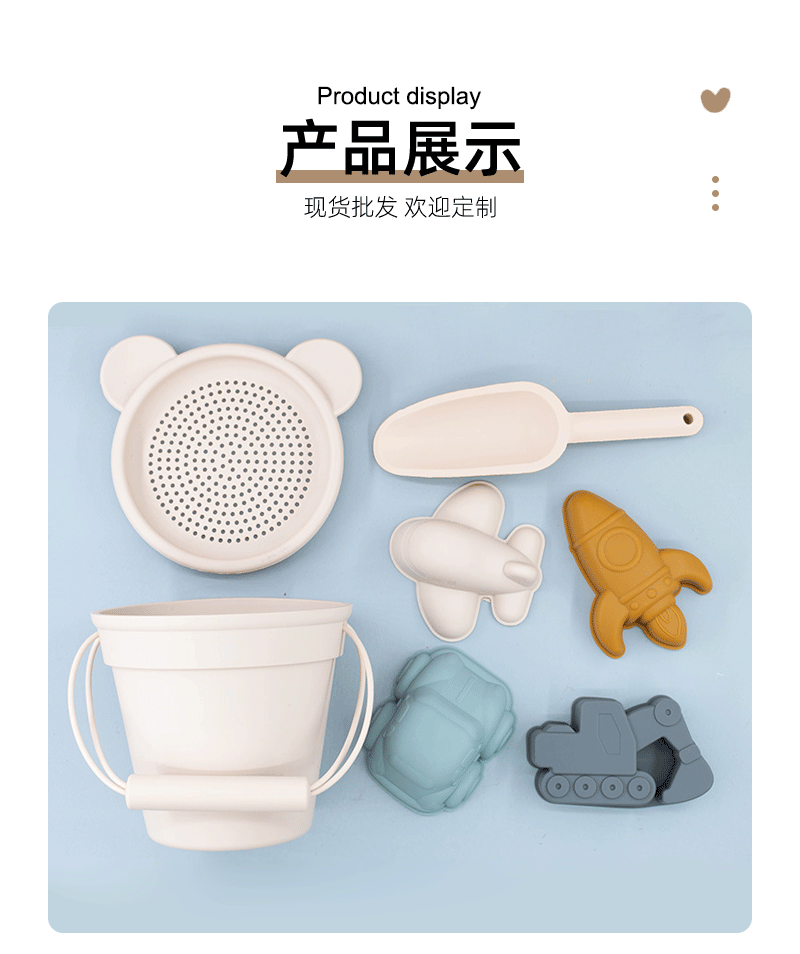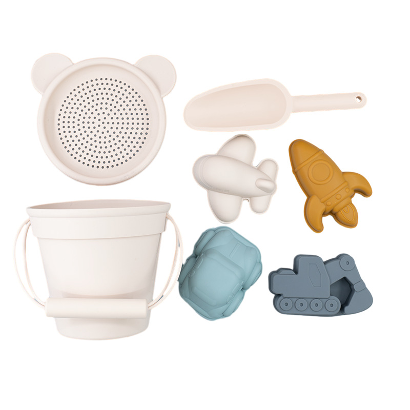 어린이 실리콘 비치 버킷 세트 재고 도매 공급 해변 부모-자식 대화 형 물 장난감 모델 모래 버킷