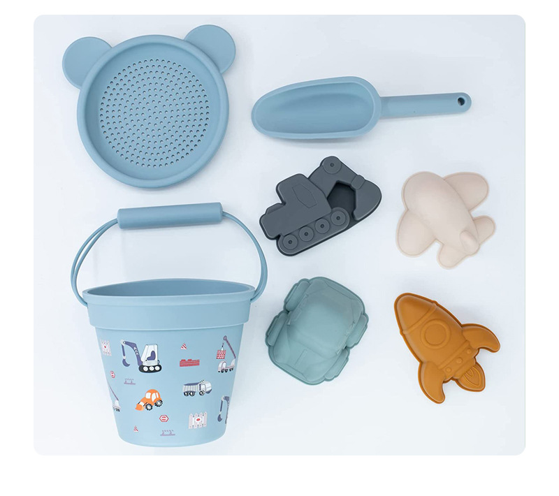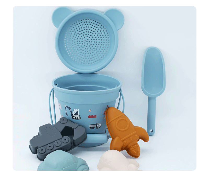 어린이 실리콘 비치 버킷 세트 재고 도매 공급 해변 부모-자식 대화 형 물 장난감 모델 모래 버킷스토어 가기