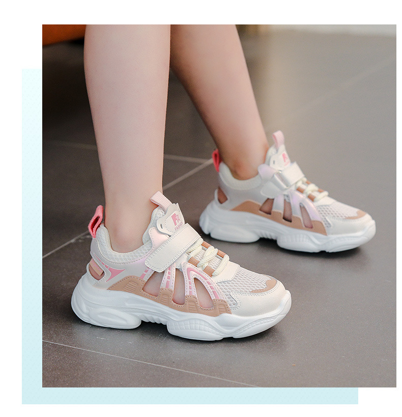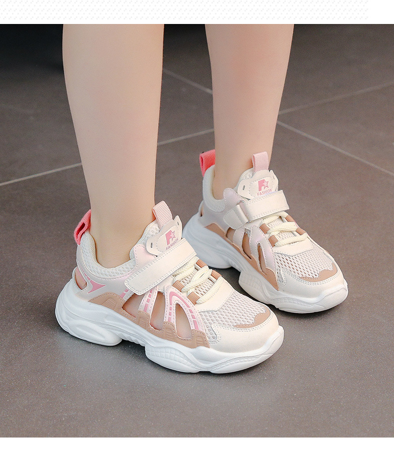 2026년 여름 신상 여아 프레임 슈즈 통기성 메쉬 운동화 속이 빈 학생용 미끄럼 방지 부드러운 밑창 캐주얼 샌들