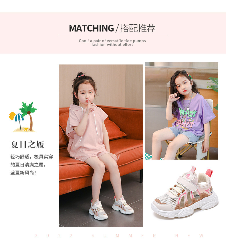2026년 여름 신상 여아 프레임 슈즈 통기성 메쉬 운동화 속이 빈 학생용 미끄럼 방지 부드러운 밑창 캐주얼 샌들스토어 가기