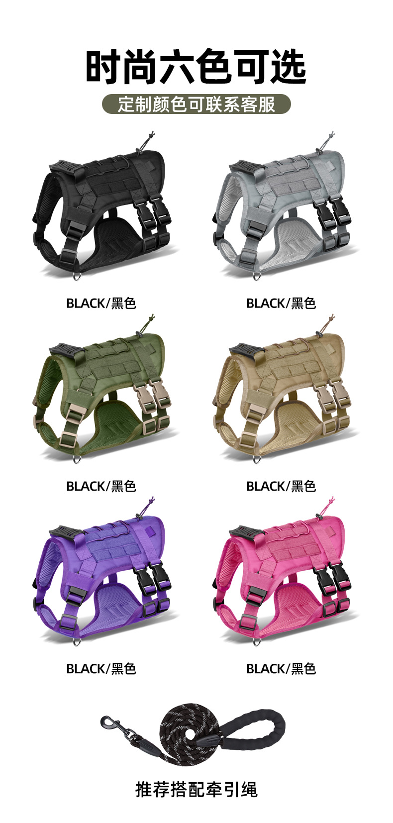 새로운 다기능 전술 조끼형 애완견 하네스, 대형견용 목줄, 야외용 목줄