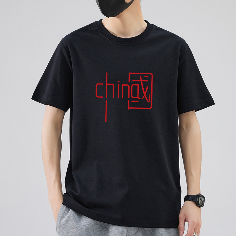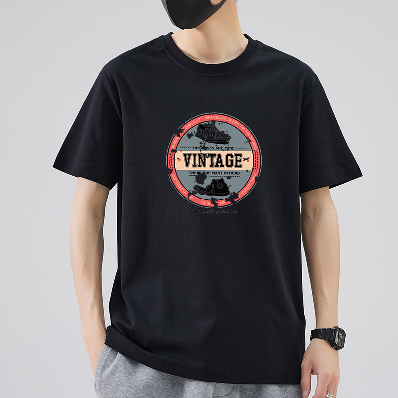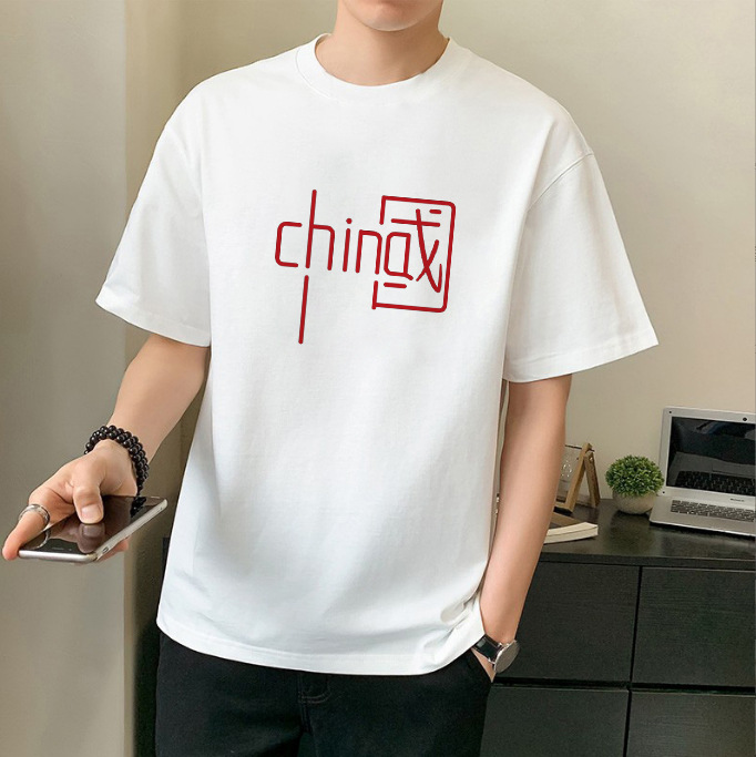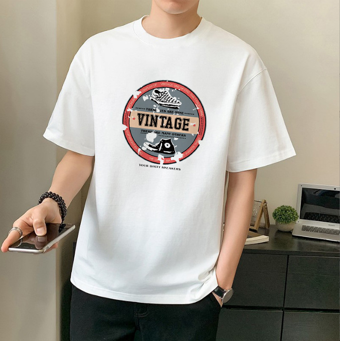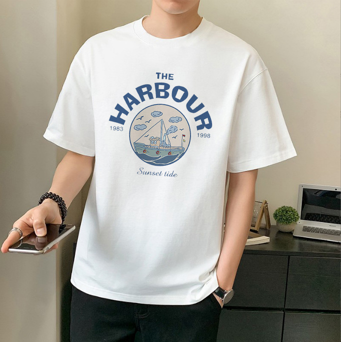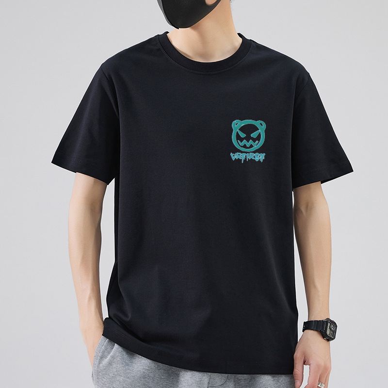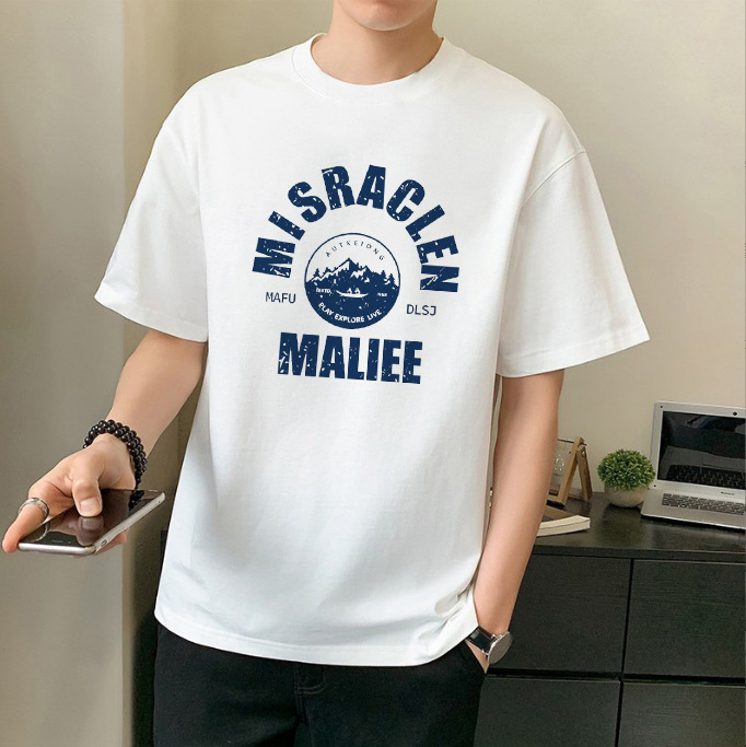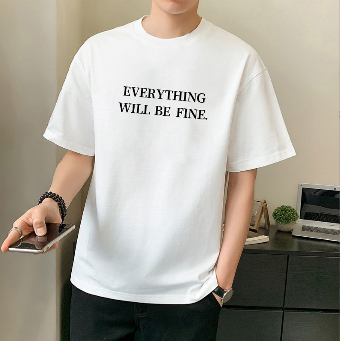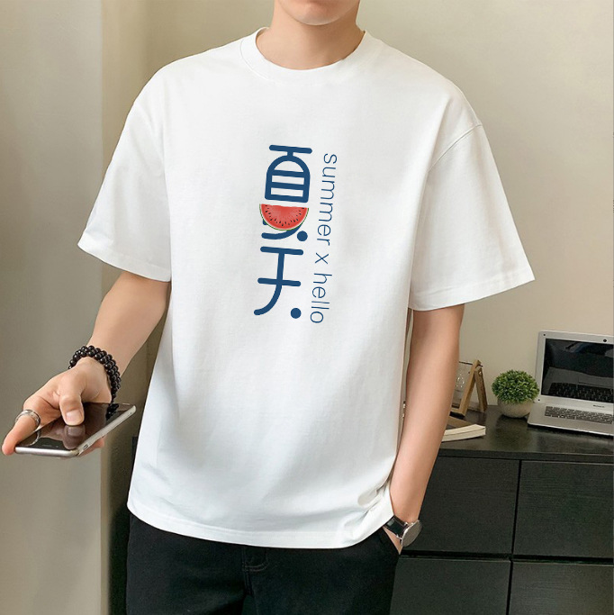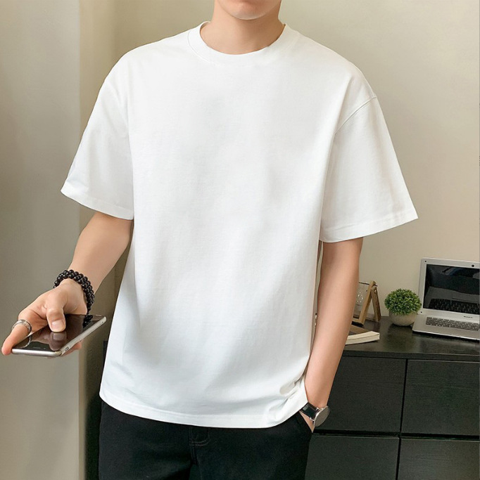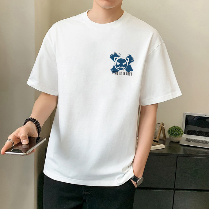 남성 패션 브랜드 스트리트 힙합 스타일 면 반팔 티셔츠 남성용 라운드 넥 하프 슬리브 느슨한 모든 매치 탑 도매 소스스토어 가기