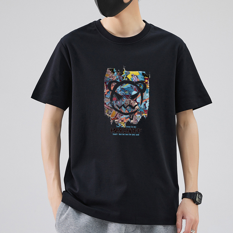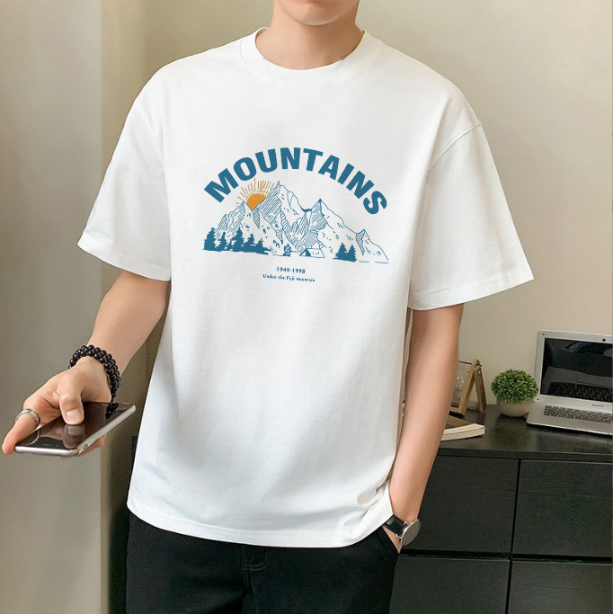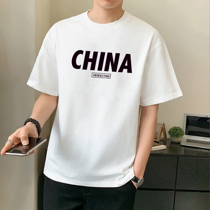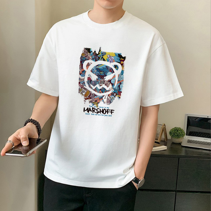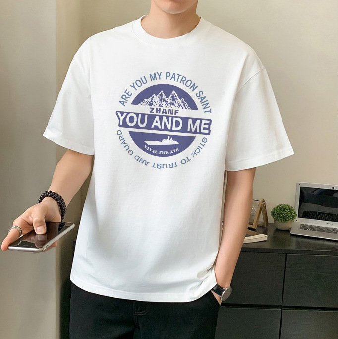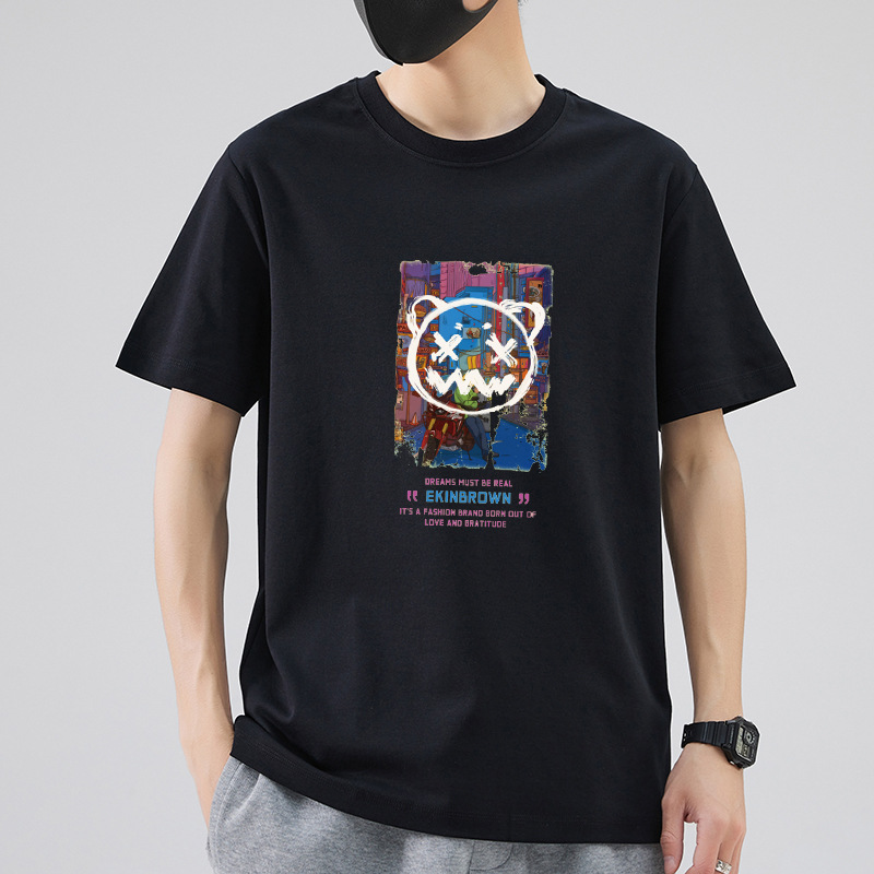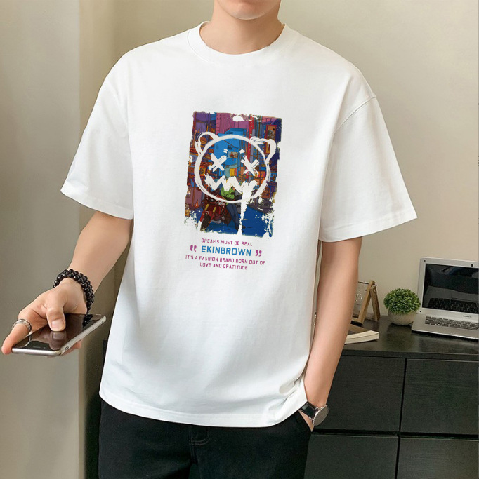 남성 패션 브랜드 스트리트 힙합 스타일 면 반팔 티셔츠 남성용 라운드 넥 하프 슬리브 느슨한 모든 매치 탑 도매 소스