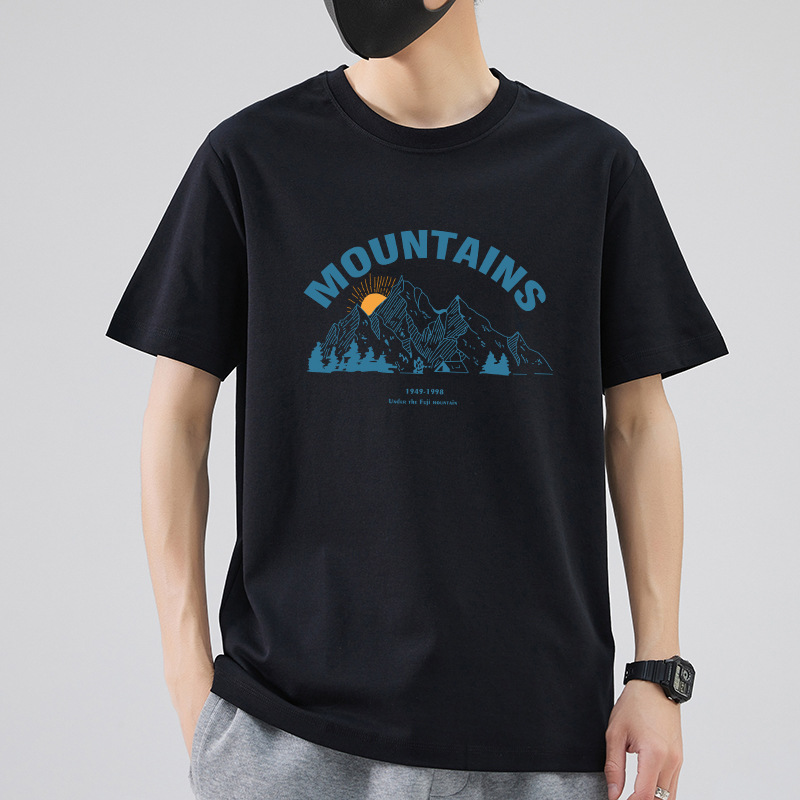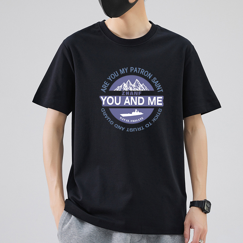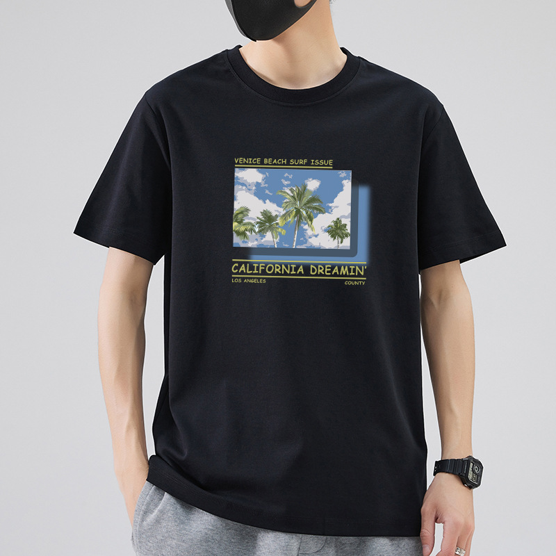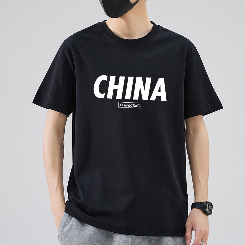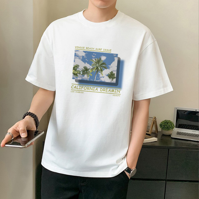 남성 패션 브랜드 스트리트 힙합 스타일 면 반팔 티셔츠 남성용 라운드 넥 하프 슬리브 느슨한 모든 매치 탑 도매 소스
