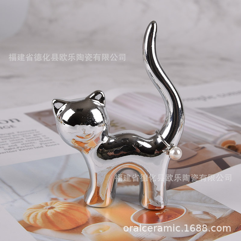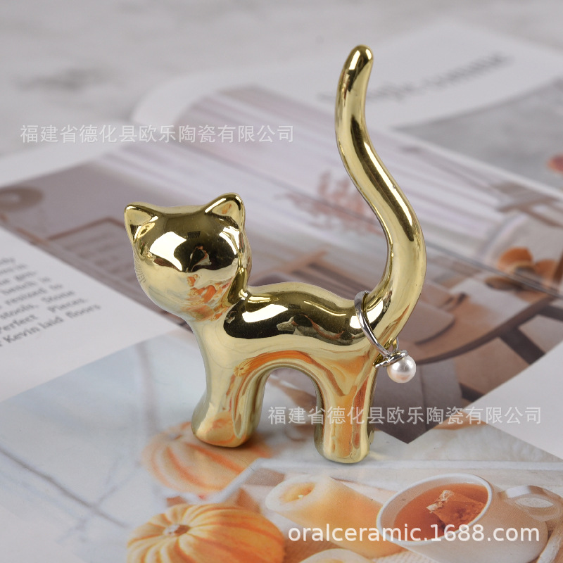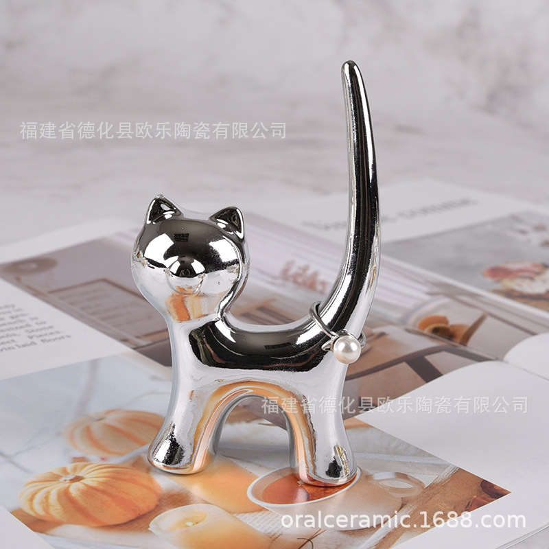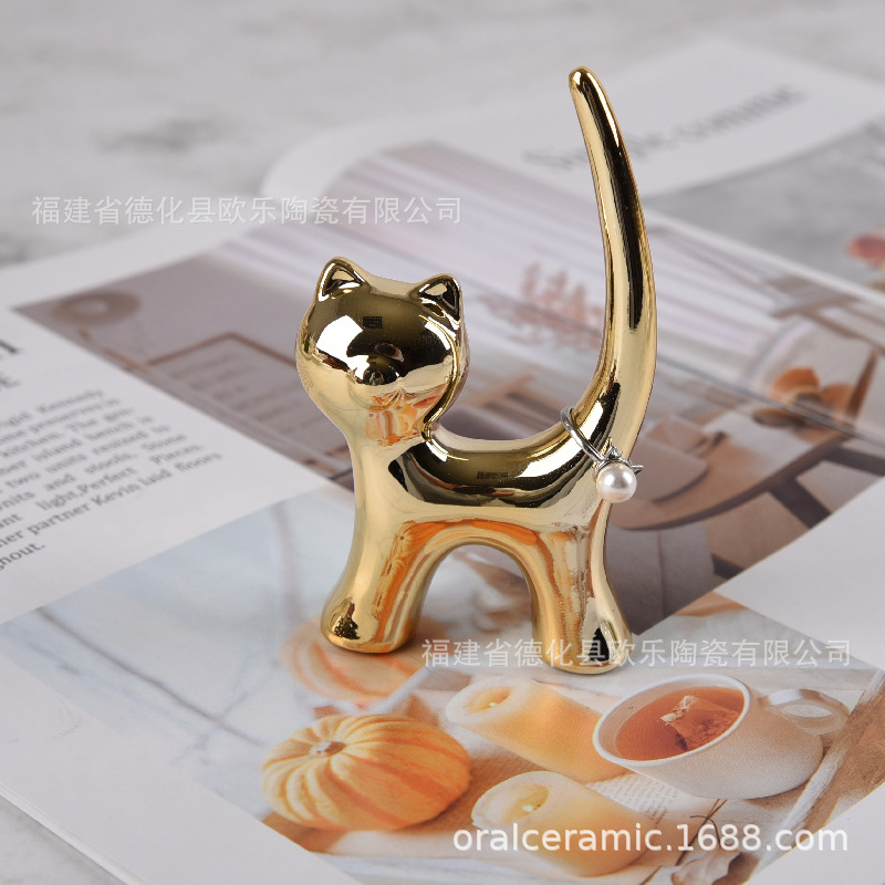 크로스 보더 세라믹 곡선 고양이 가치 고양이 토끼 코끼리 동물 타격 개 링 트레이 공예 장식품 보석 보석 랙