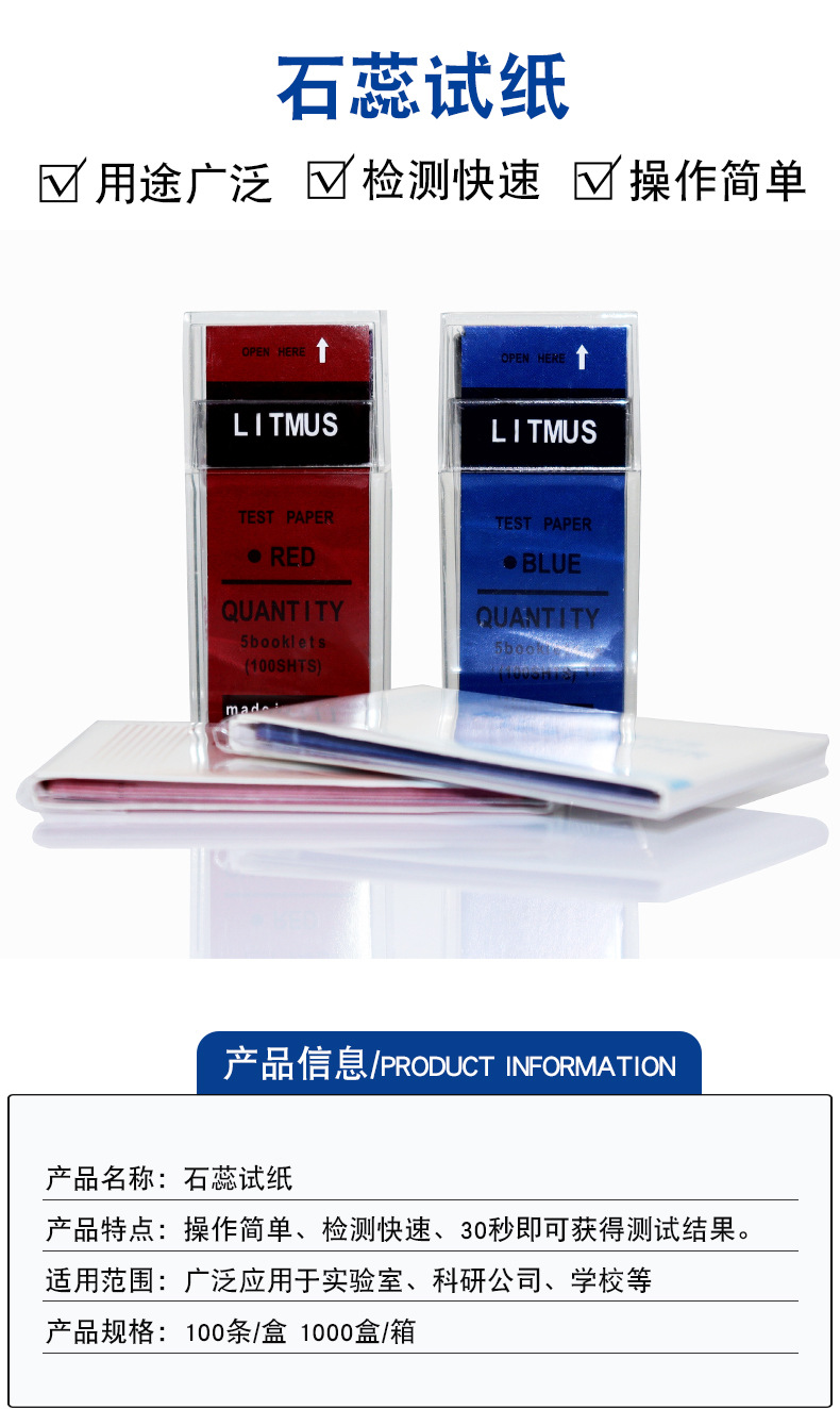 Keding 수출형 빨간색 리트머스 시험지 중성 파란색 리트머스 시험지 산성 및 알칼리성 측정 100개/상자스토어 가기