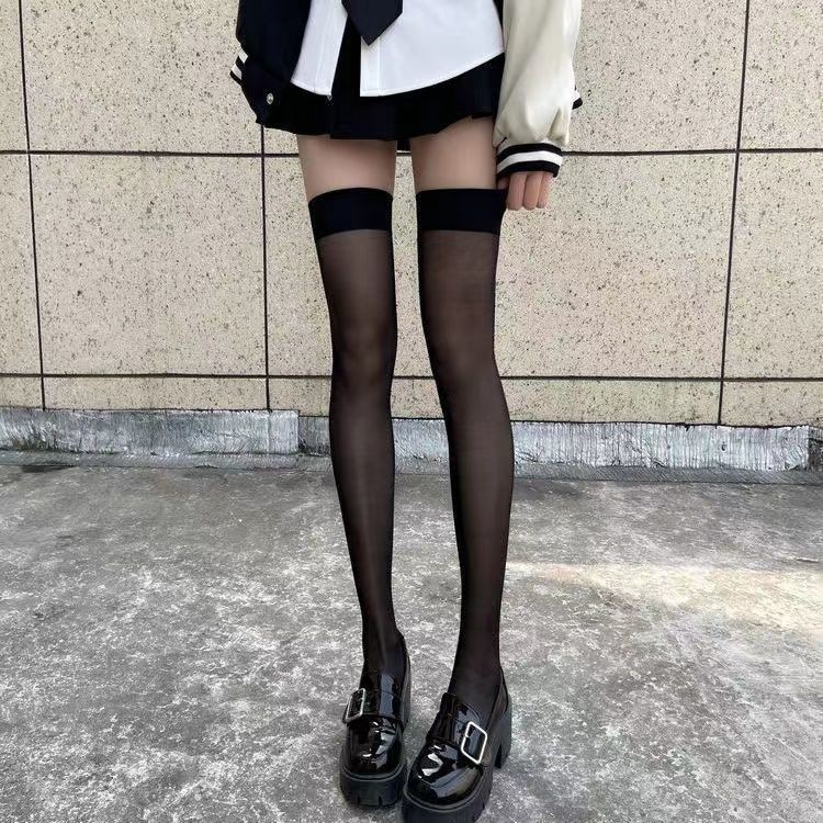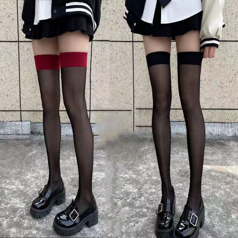 얇은 대조 컬러 스타킹 무릎 위 양말 여성용 섹시 레드 에지 블랙 실크 투명 컬러 매칭 섹시 블랙 스타킹스토어 가기