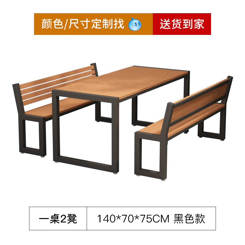야외 안뜰 테이블과 의자 조합 발코니 레저 자외선 차단제 긴 식탁과 의자 야외 공원 야외 철 나무 테이블