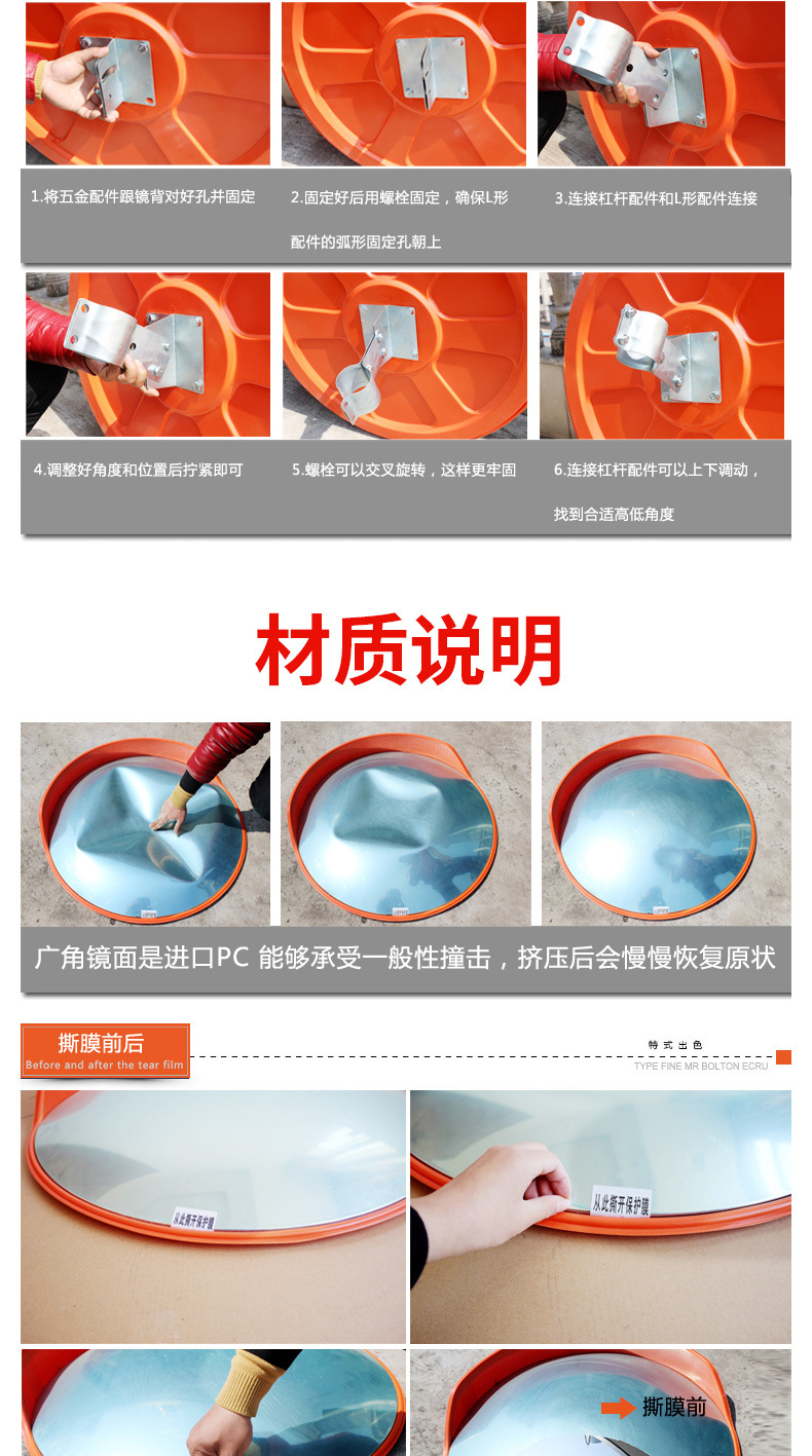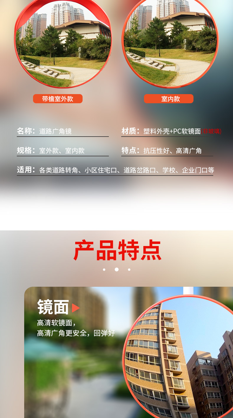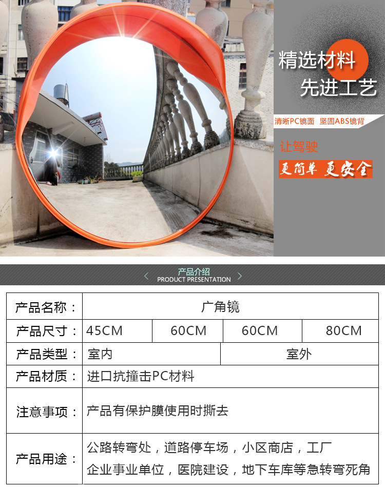 고화질 광각 거울 제조업체 도매 베이스 코너 거울 실내 및 실외 구형 거울 도로 교통 반사 볼록 거울