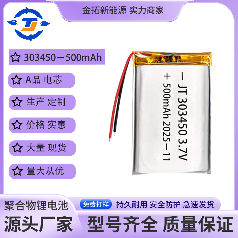 303450 폴리머 리튬 배터리 500mAh 블루투스 스피커 배터리 3.7V 리모콘 장난감 자동차 리튬 배터리