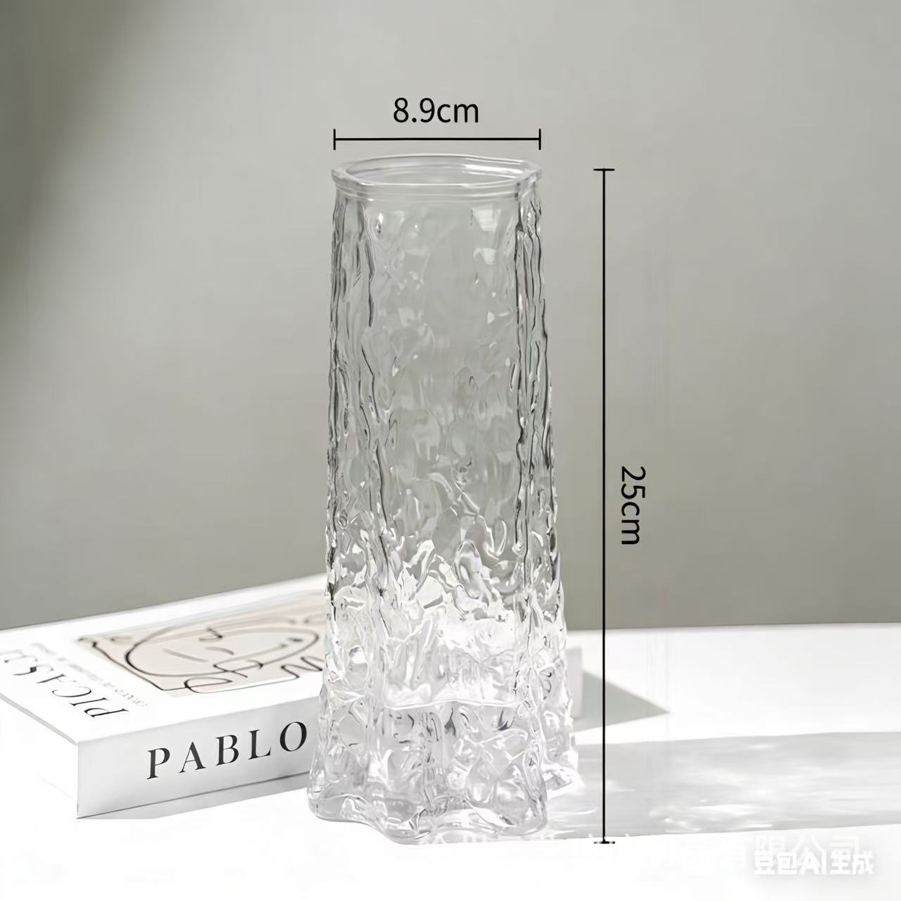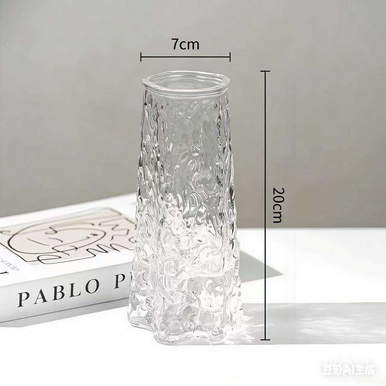 스타일 빙하 패턴 유리 꽃병 간단한 투명 수생 꽃 꽃꽂이 꽃 세트 거실 식탁 장식 장식품