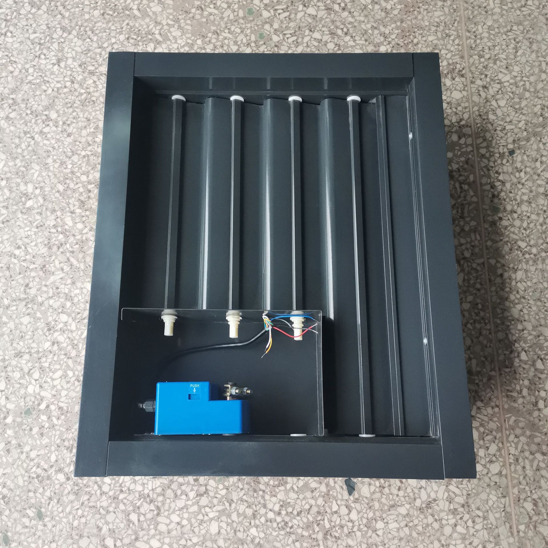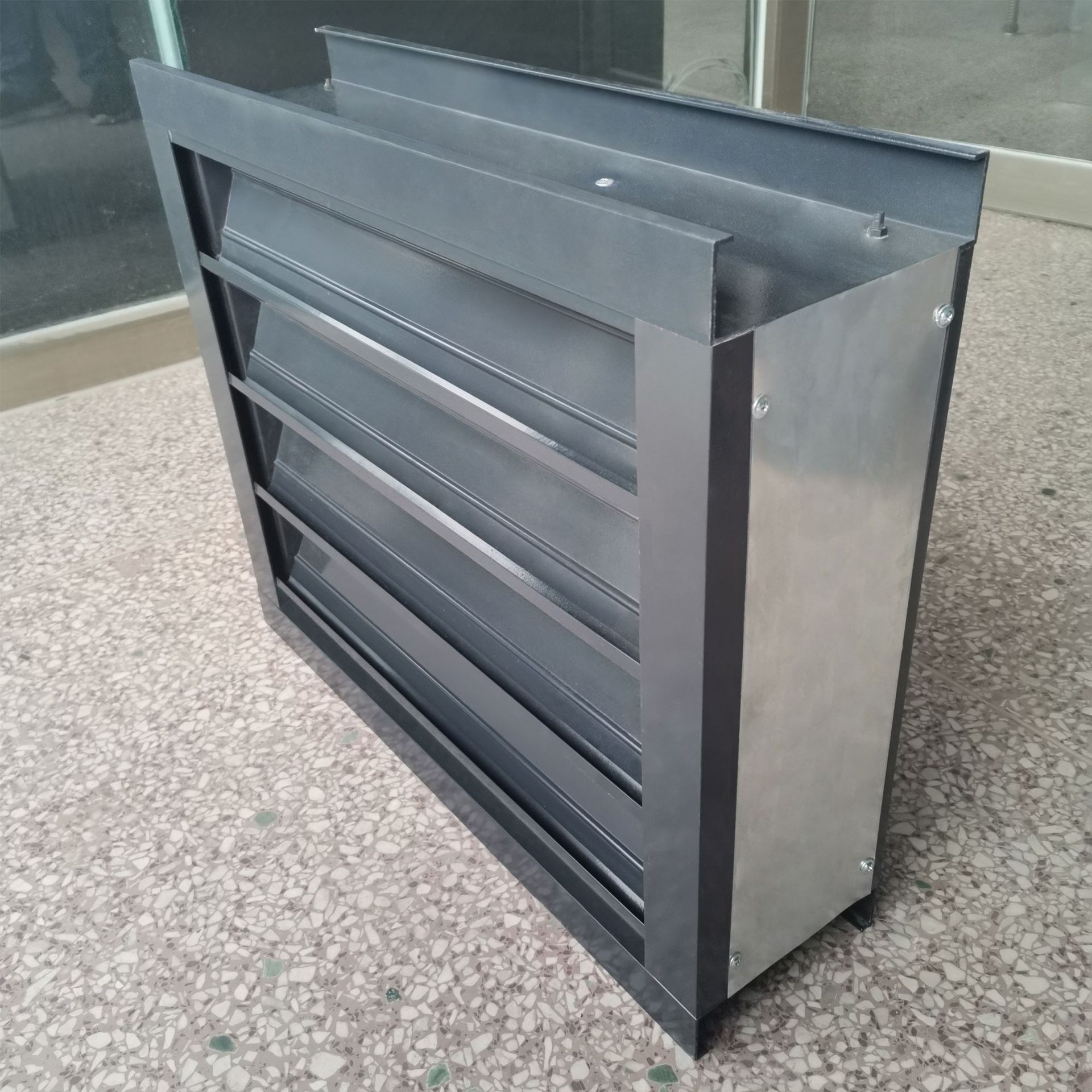 LBC系列铝合金百叶窗(一般用于变电站设备间)为双层(固定防雨层和活动调节层)可调节防雨百叶窗,固定层百叶防飘雨,活动层百叶可以开关调节风量,还可加过滤网:
